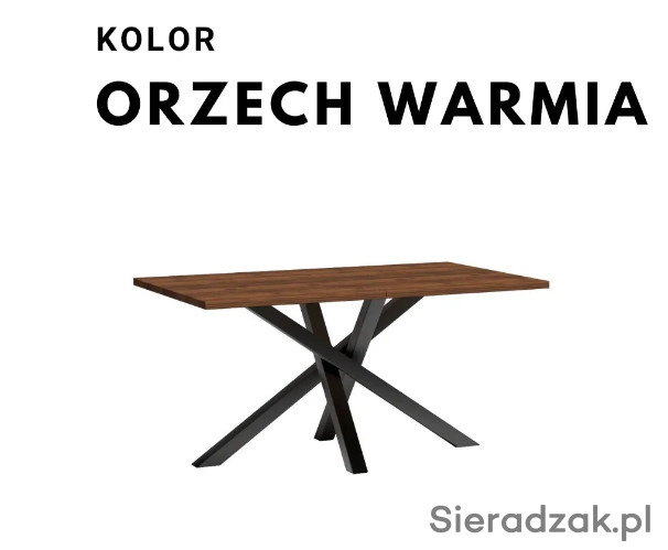 Duży, rozkładany stół do jadalni, salonu. Nogi są wykonane z metalu, pomalowane proszkowo na czarny kolor. Stół przed rozłożeniem ma długość 160 cm. Może posłużyć jako duży stół na rodzinne okazję, gdzie zapraszamy większą liczbę osób. Korzystając z dołączonej wkładki (50 cm), możemy mieć duży mebel na rodzinne obiady i przyjęcia. Stół rozkłada się aż do rozmiaru 260 cm. Stół pasuje do nowoczesnych industrialnych, loftowych wnętrz, jaki i klasycznych wystrojów. Grubość blatu to 3,2cm.