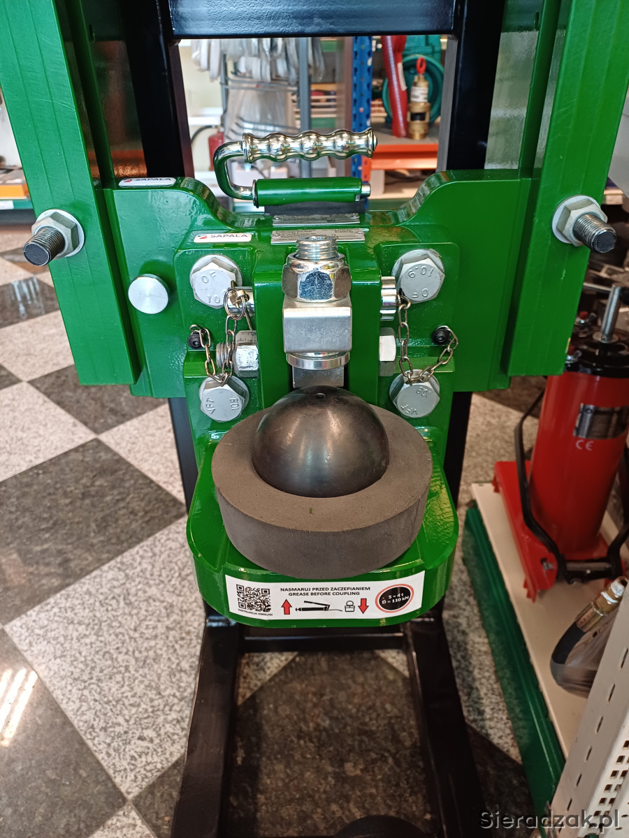 Zestaw w kolorze zielonym zawiera zmontowany zaczep kulowy k80 z płytą adaptacyjną, gotowy do zainstalowania w ramie ciągnika: Waga - 50kg