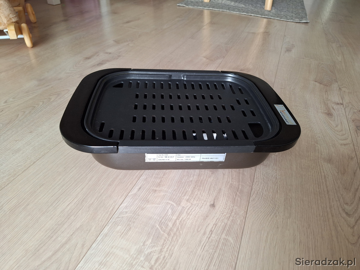 Mam do zaoferowania użyty kilka razy elektryczny grill stołowy. Ruszt wykonany z teflonu. Bardzo łatwy w czyszczeniu. Termostat umieszczony na zasilaczu.