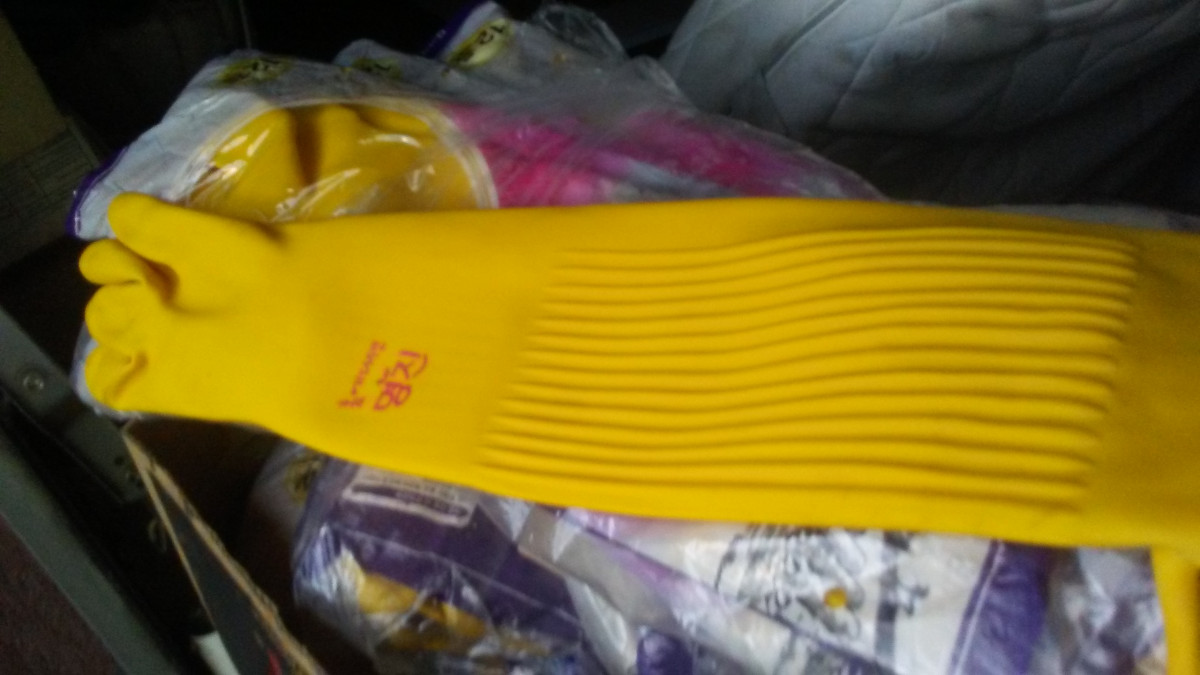 sprzedam uniwersalne dlugie grube rekawice gumowe weterynaryjne do kwasow , do mies ryb i wiele innych zastosowan bardzo gruba guma cena za sztuke posiadam 34 stuki