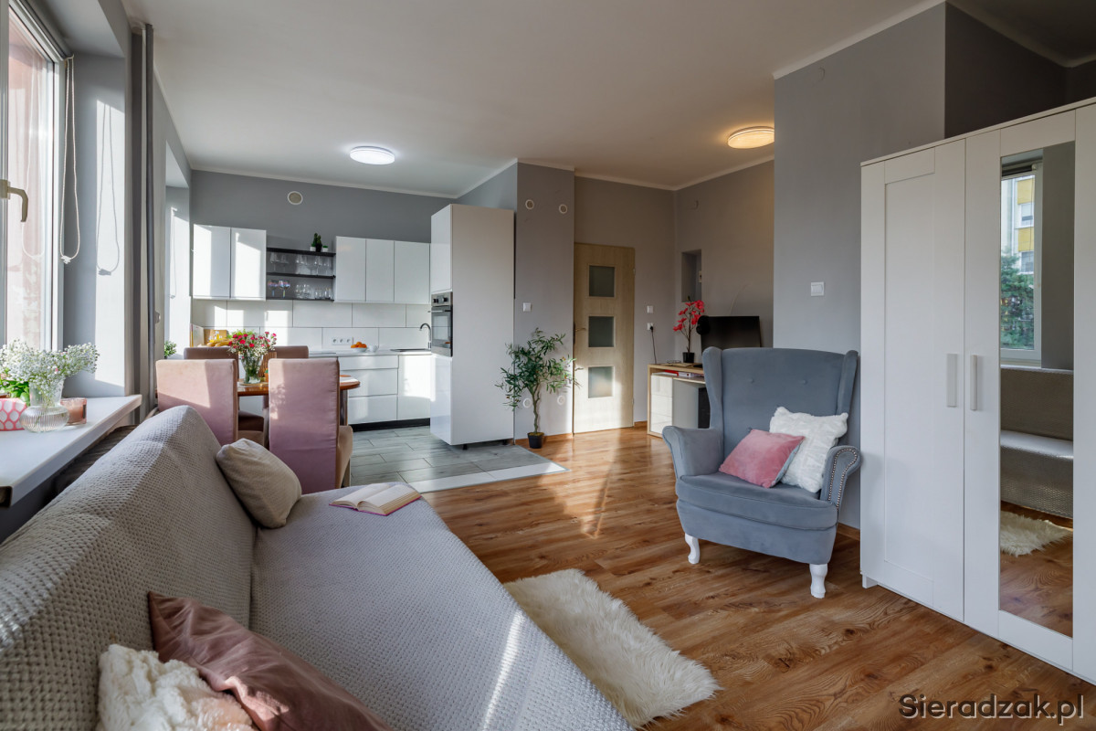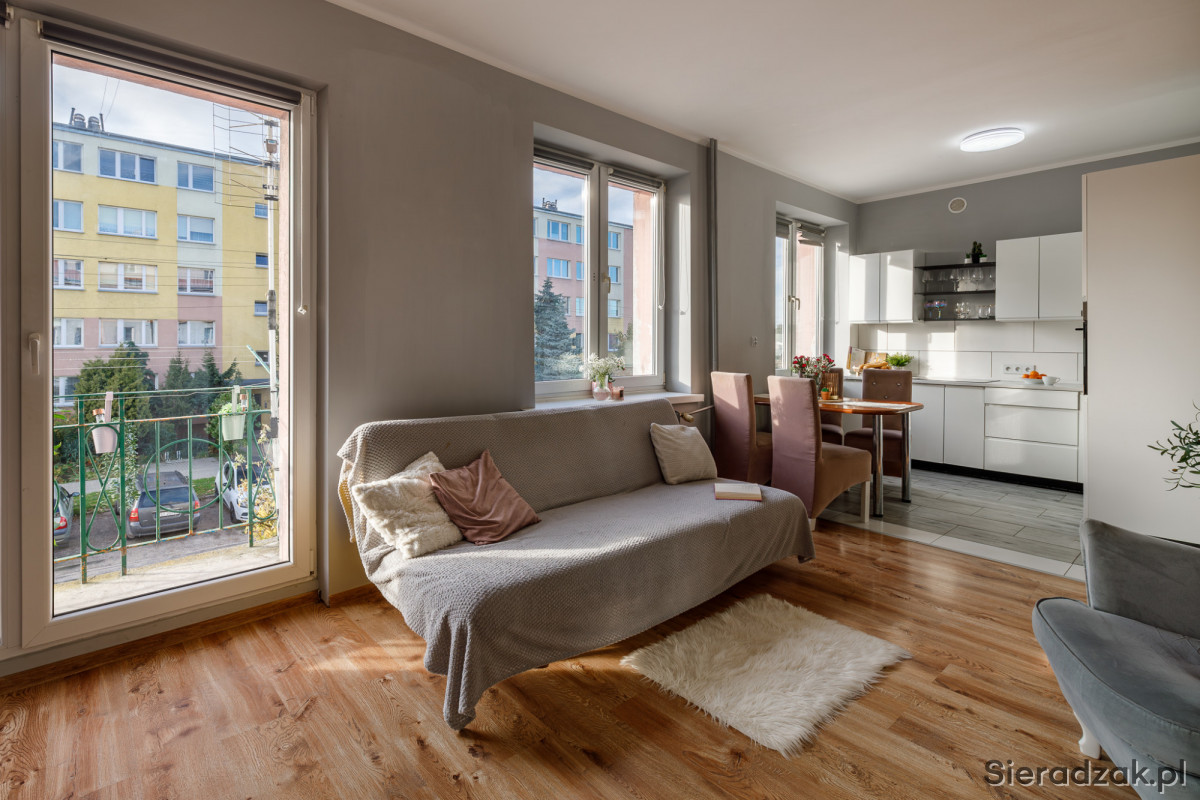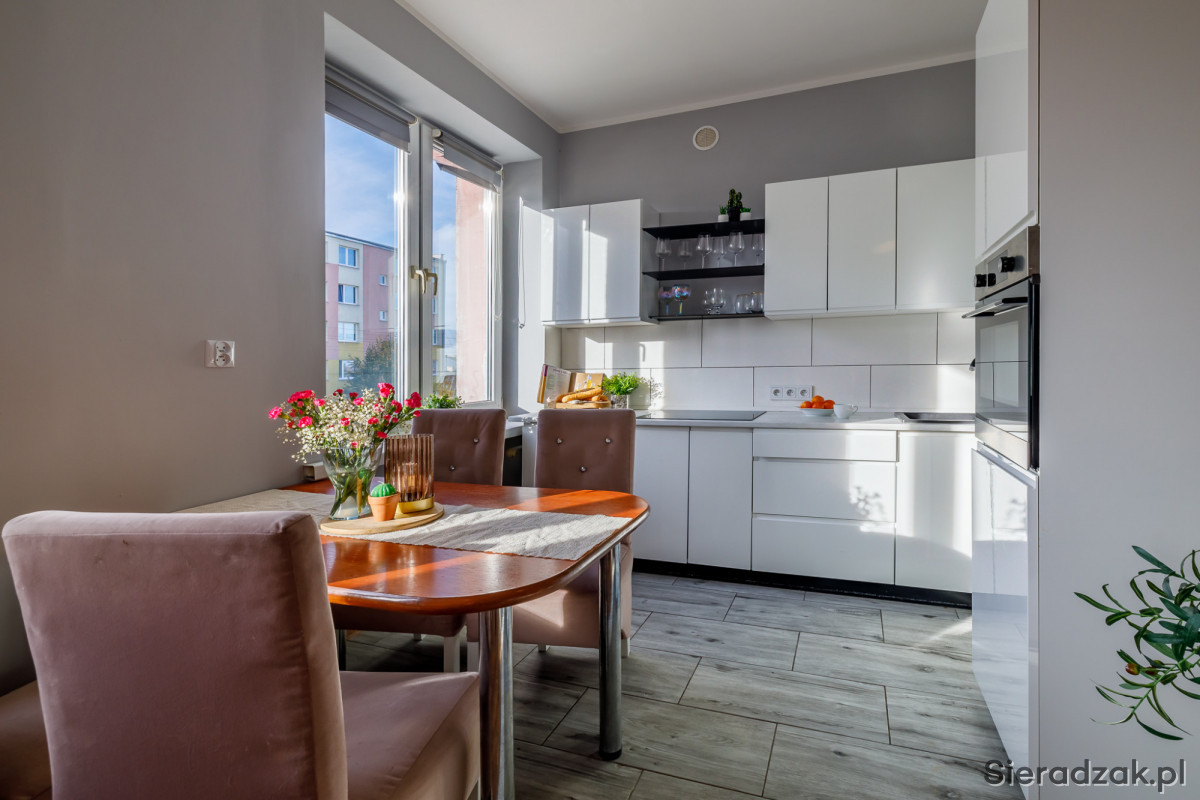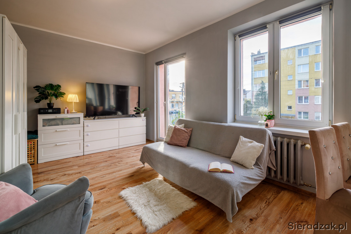 Mieszkanie jest wyremontowane, wykończone w stylu nowoczesnym. Dużo światła dziennego sprawia, iż jest ono przytulne i ciepłe. Idealnie nadaje się dla pary, singla, ale także dla małej rodziny. Spokojna okolica sprawia, że każdy będzie czuł się tutaj bezpiecznie oraz komfortowo.