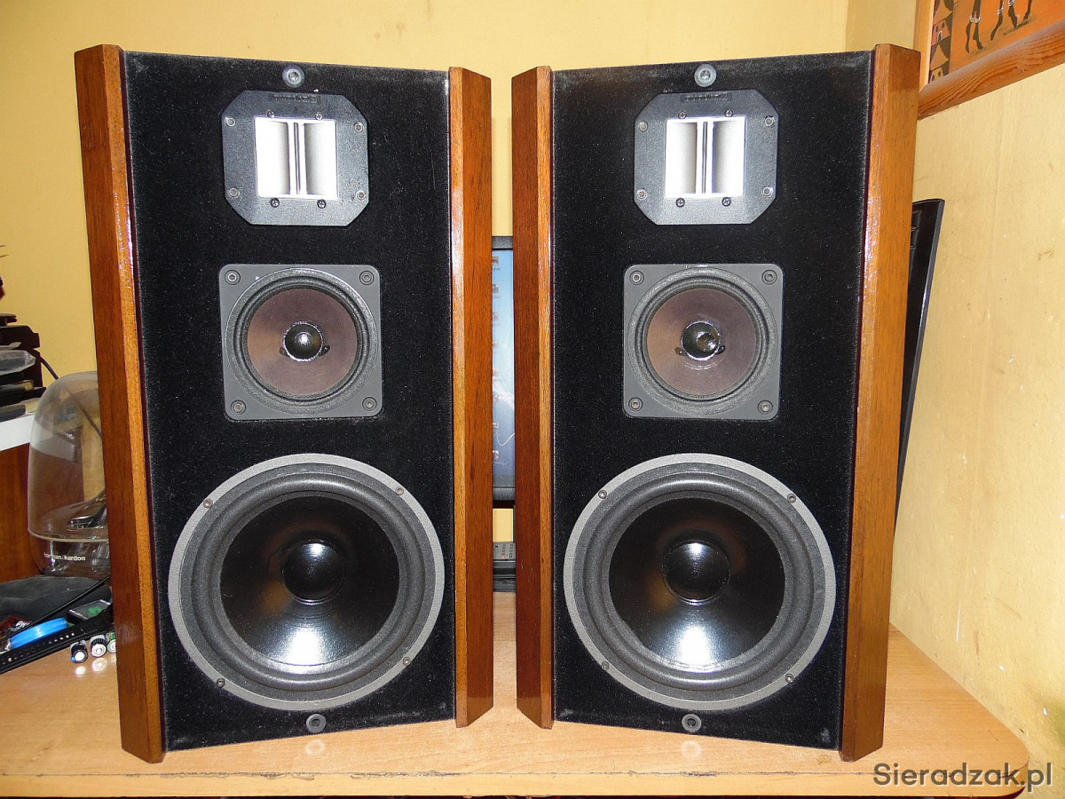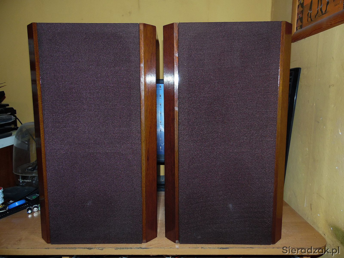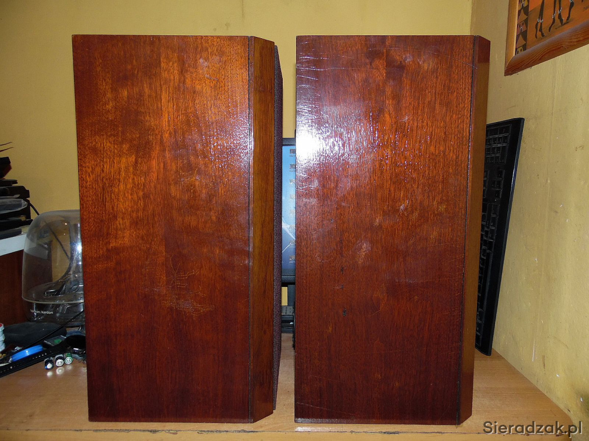 Kolumny w stanie jak na foto. Lakier z połyskiem fronty wykładane aksamitem. Grają rewelacyjnie. Polecam.