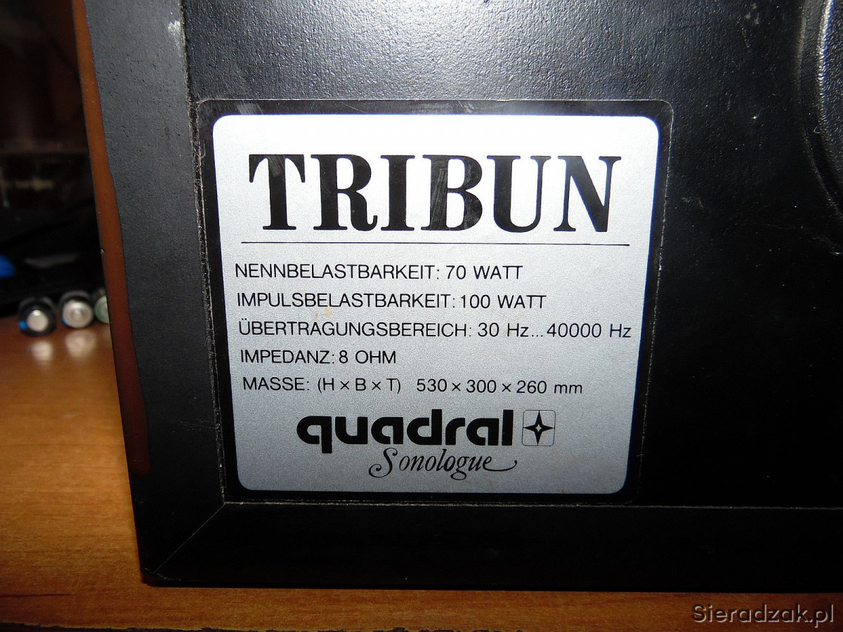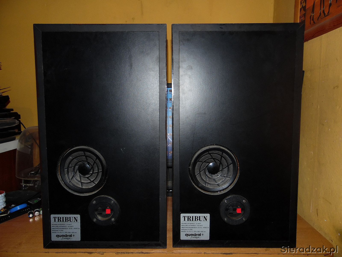 Quadral Sonologue Tribun o mocy 100 wat (8ohm), pasmo 30 do 40000Hz (w późniejszych, bardziej budżetowych modelach z reguły tylko 35 do 20000Hz). Jest to najlepsza, pierwsza i bodajże niestety ostatnia wersja tych kolumn z wysokotonowymi głośnikami wstęgowymi.