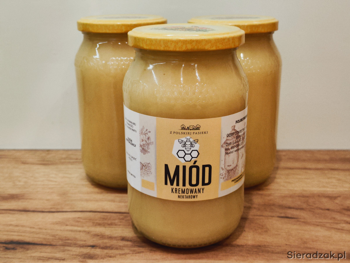 Sprzedam Miód Wielokwiatowy Kremowany z naszej pasieki ze zbiorów w maju-czerwcu 2025. Miód w słoikach 900ml o wadze netto miodu min. 1,20kg.