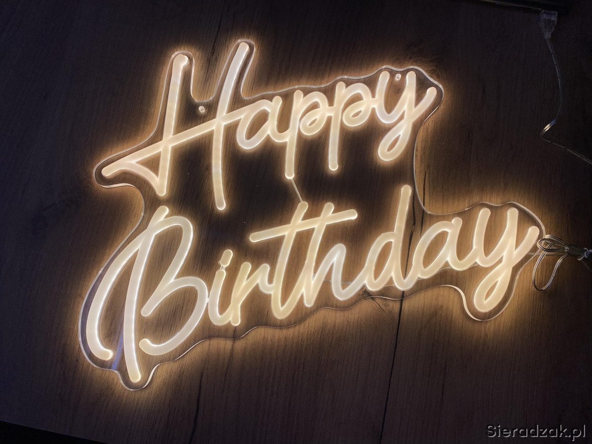 Mam do wynajęcia neon Happy Birthday o wymiarach 42x31cm, żółte światło. Zawiera haczyki do zawieszenia. Cena 40zł/ za zlecenie. Więcej informacji pod numerem 514285592. Możliwy odbiór w Sieradzu.