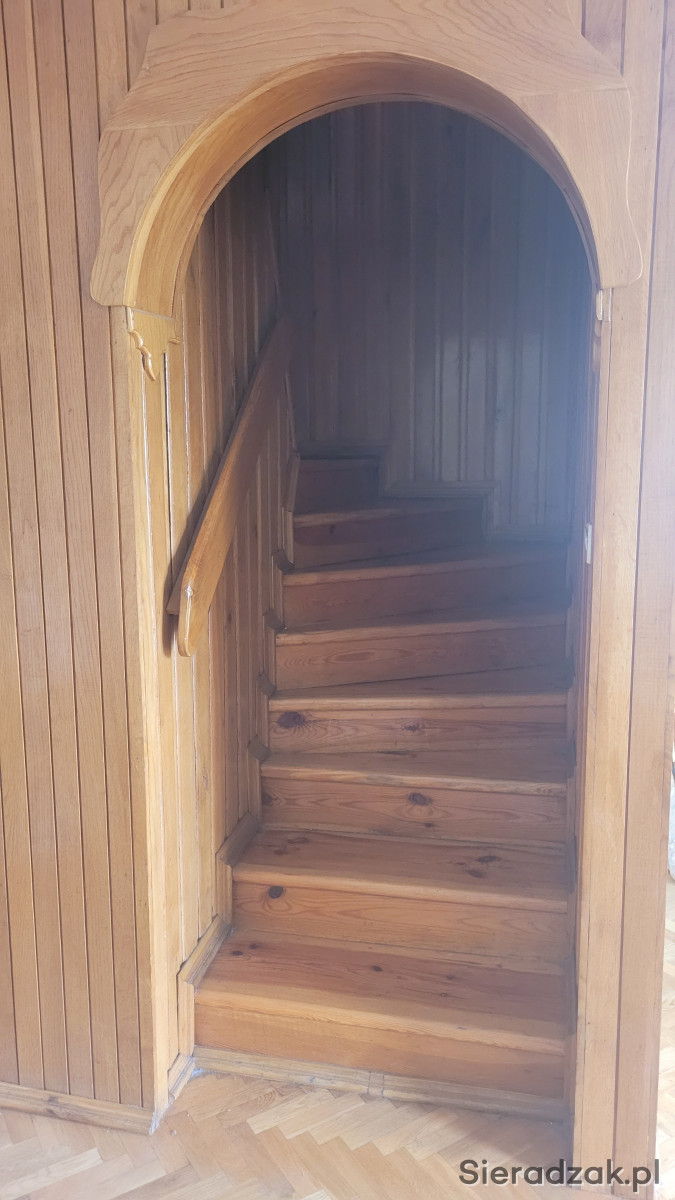Na każde piętro prowadzą drewniane, dębowe schody. Na podłogach jest parkiet dębowy.