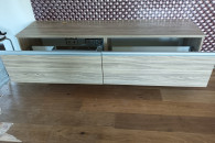 Używana szafka RTV z płyty meblowej w idealnym stanie, bez śladów użutkowania, szerokość 200 cm, wysokośc 40 cm, głębokość 50 cm