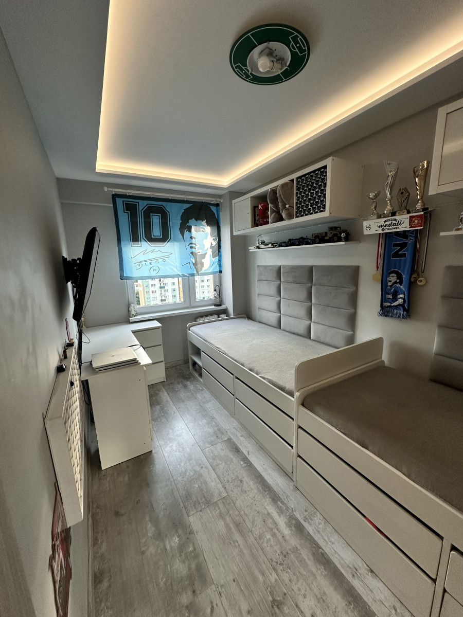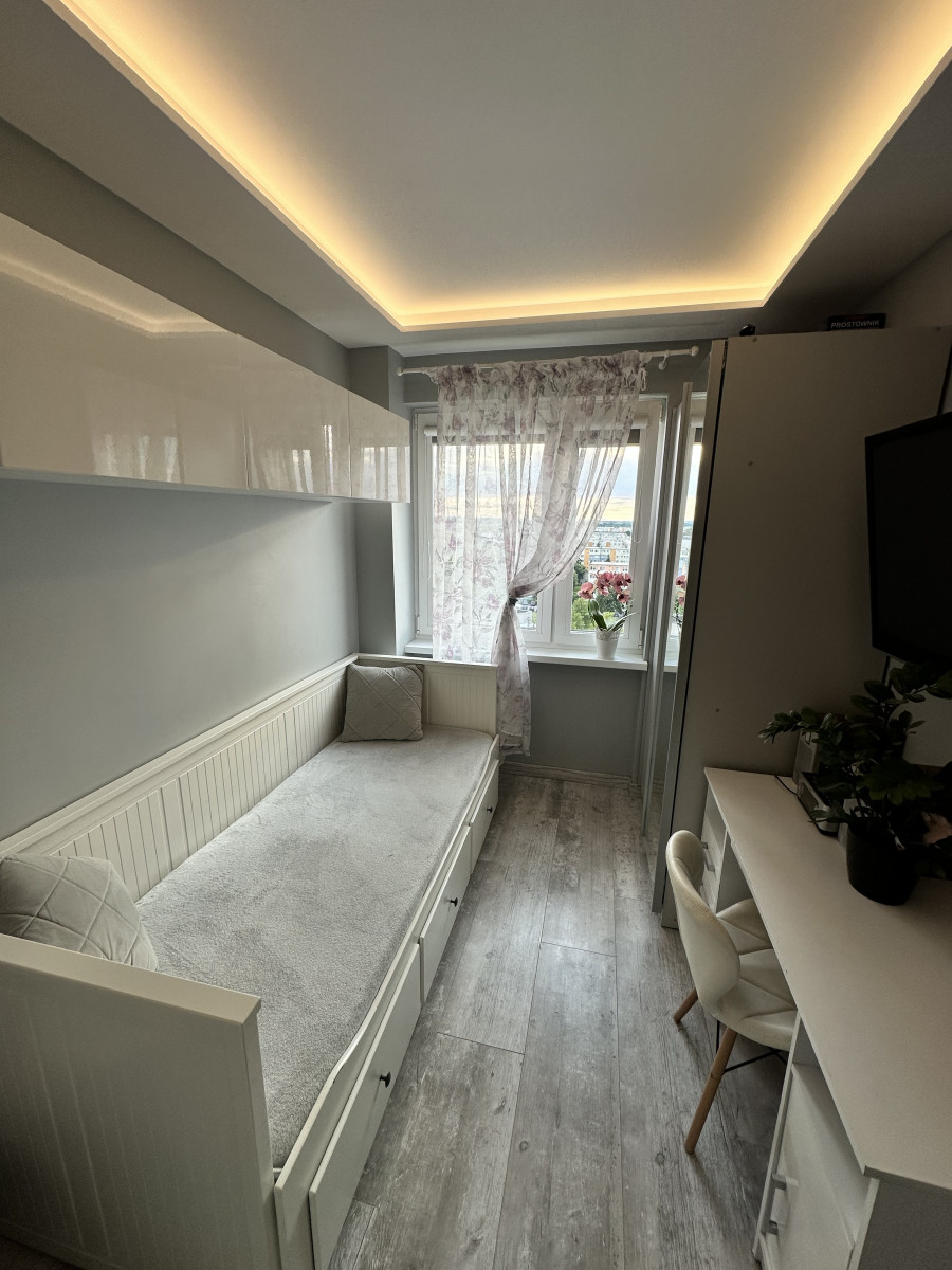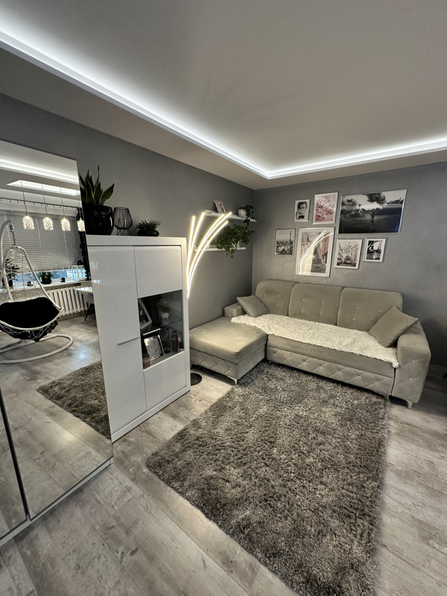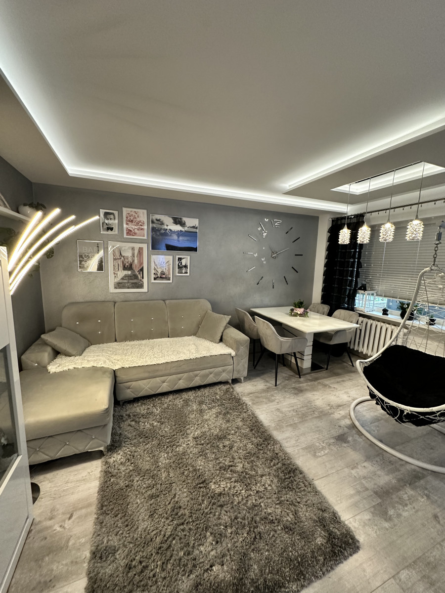 Mieszkanie po generalnym remoncie w 2021 roku, zrobione wylewki we wszystkich pomieszczeniach, wymieniono wszystkie okna na trzyszybowe (zimą nie trzeba włączać centralnego ogrzewania!) podłogi, ściany, wymieniona cała instalacja elektryczna (również na włączniki dotykowe i gniazdka), położone ledy w sufitach, zrobiono gładzie i tynki ozdobne na ścianach. W kuchni znajdują się meble wykończone na wymiar. Cała łazienka wykonana wraz z WC na specjalne zamówienie według projektu. Na balkonie, który jest długi i szeroki położono płytki mrozoodporne. Jedynie nie wymienione drzwi wejściowe do mieszkania.