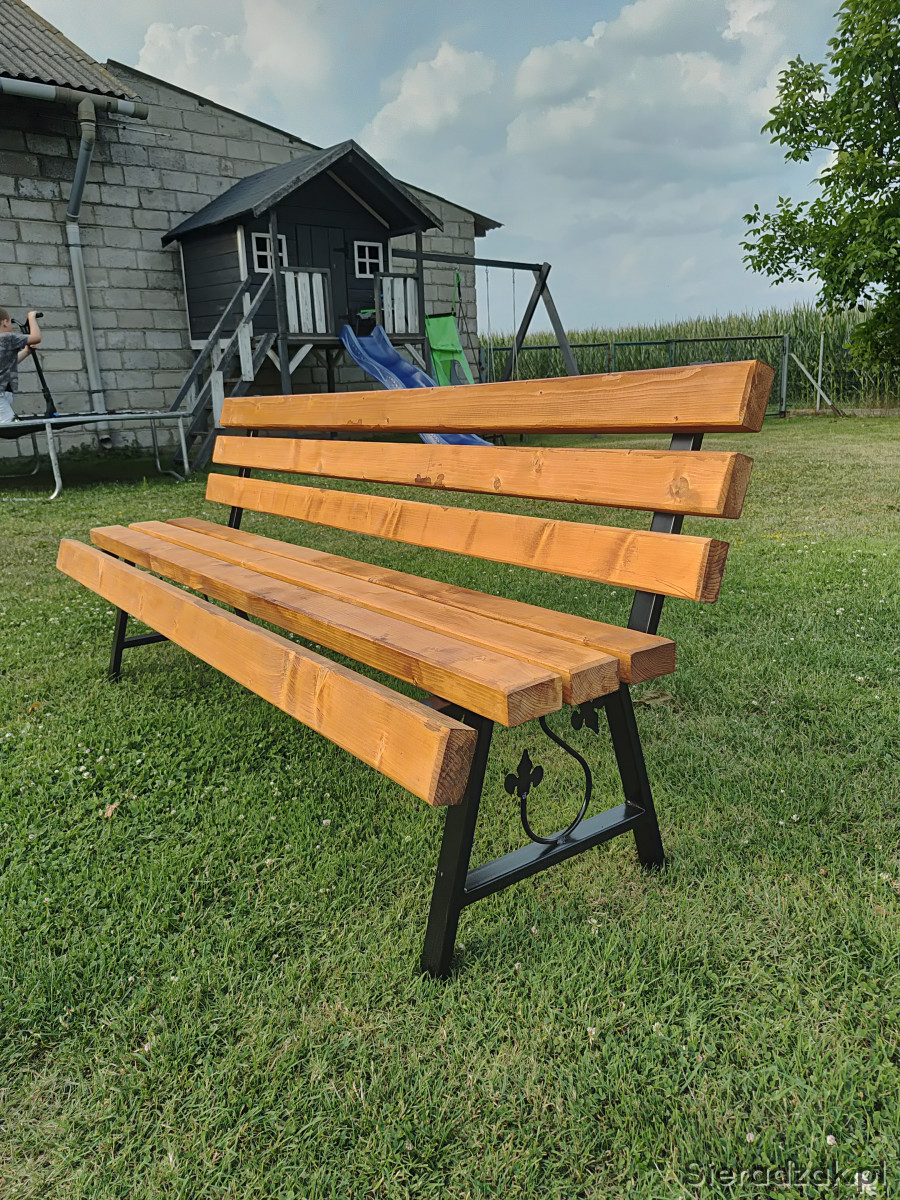 Sprzedam ławkę ogrodową na nogach metalowych ozdobnych. Ławka ma deski o grubości 4,5 cm i długości 180 cm. Pomalowane są impregnatem w kolorze dąb. Bardzo solidna I stabilna. Zainteresowanych zapraszam do kontaktu.