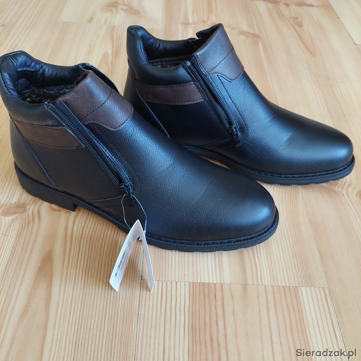 Sprzedam buty męskie z ociepleniem w środku w bardzo dobrym stanie..stan butów nowy..z metką..rozmiar 42..kolor czarny.