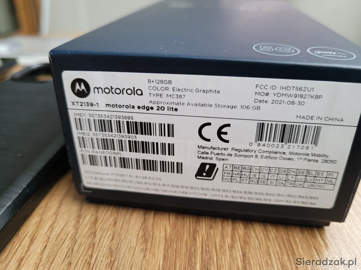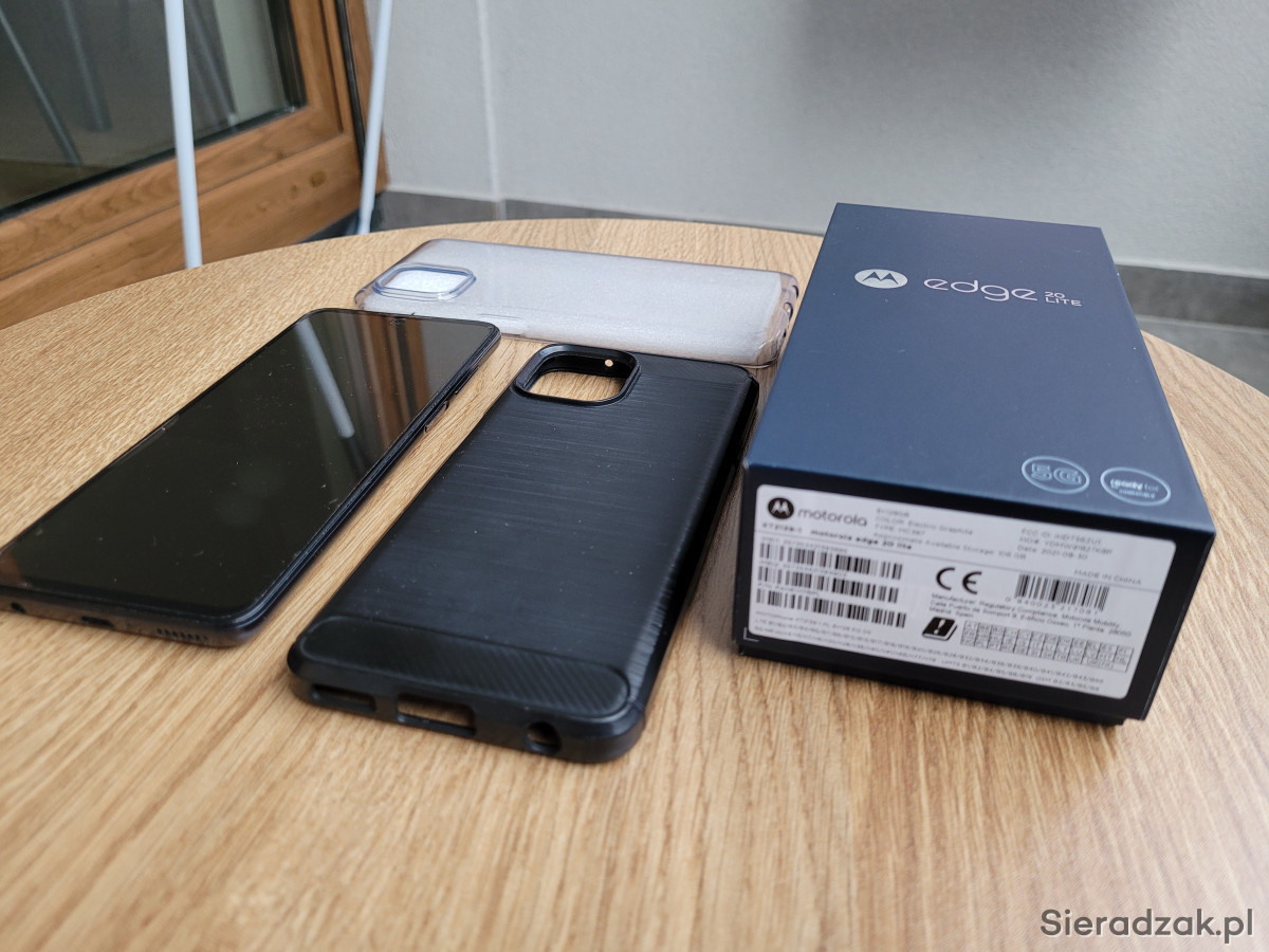 Mam do sprzedania tel Motorola Edge 20 Lite w bardzo dobrym stanie technicznym i wizualnym. Jest to model XT2139-1 w wersji 8GB ram i 128GB pamięci wbudowanej w kolorze electric graphite. Telefon uzywany okolo 1,5 roku, obecnie odpoczywa w szufladzie. Bateria w bardzo dobrej kondycji, ladowany tylko oryginalną ładowarką. Od początku założona folia ochronna na ekran jak i pokrowiec na tył telefonu. Telefon dodatkowo noszony był w pokrowcu tzw. wsuwka. Na jednym z narożników widać brak krótkiego odcinka rameczki, tego nie widać po założeniu pokrowca ale wolę o tym napisać żeby nikt nie miał pretensji.