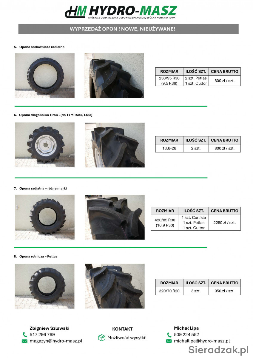 Na sprzedaż posiadamy opony sadownicze radialne o rozmiarze 230/95 R36 (9.5 R36).