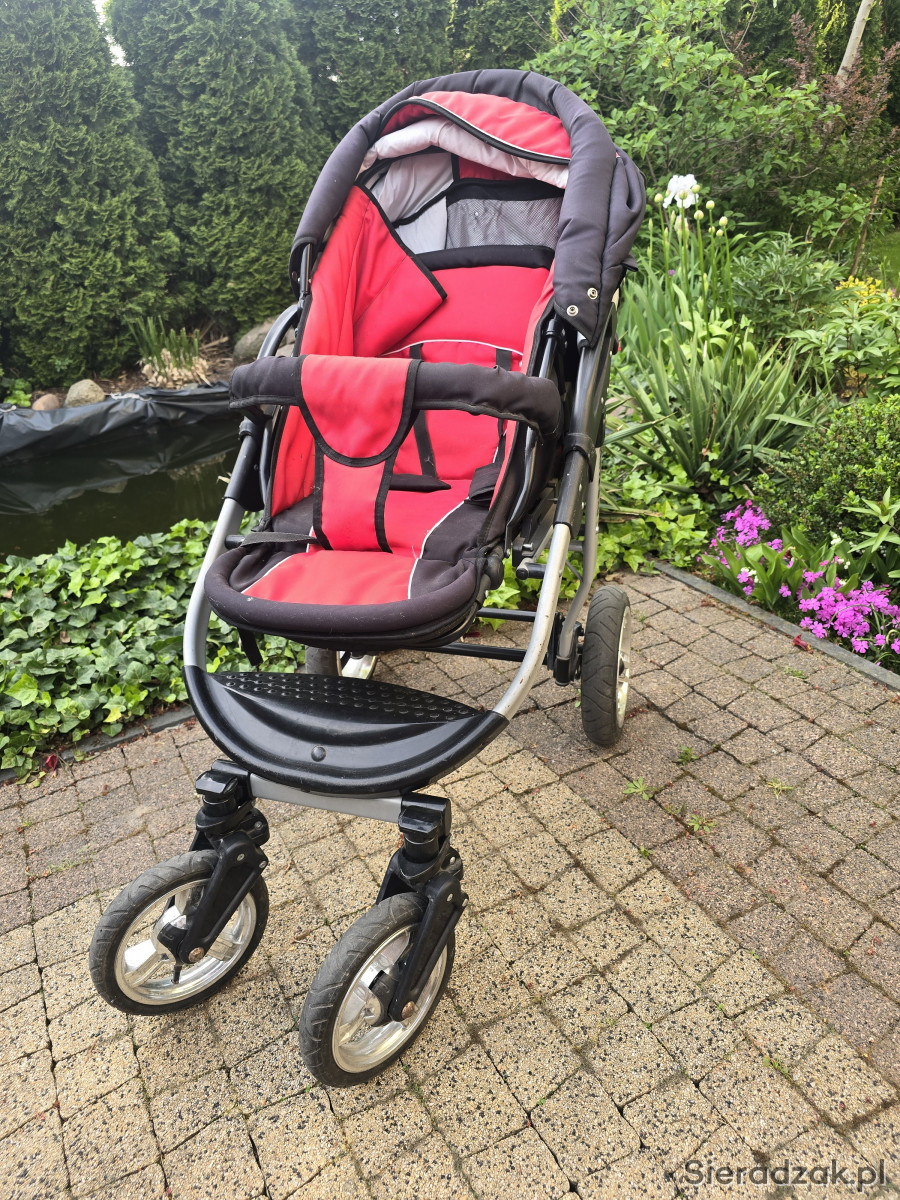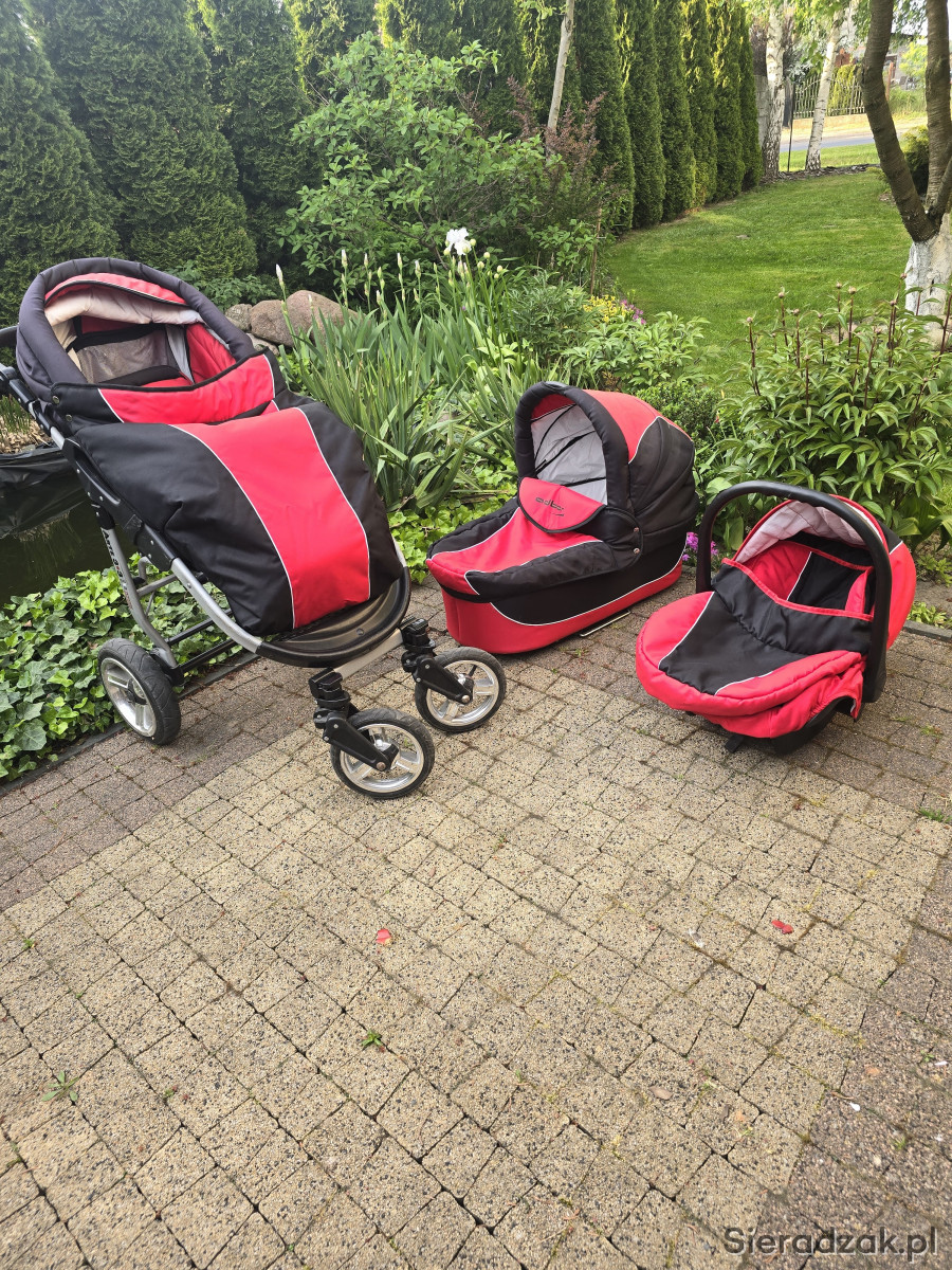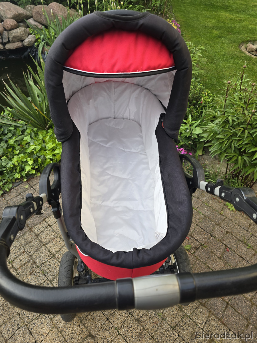 Wózek z możliwością przypięcia gondoli lub spacerówki oraz nosidełko. W bardzo dobrym stanie.