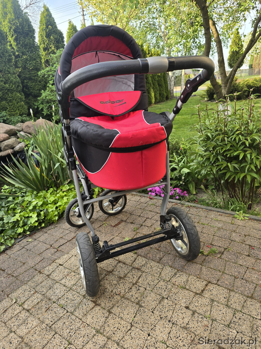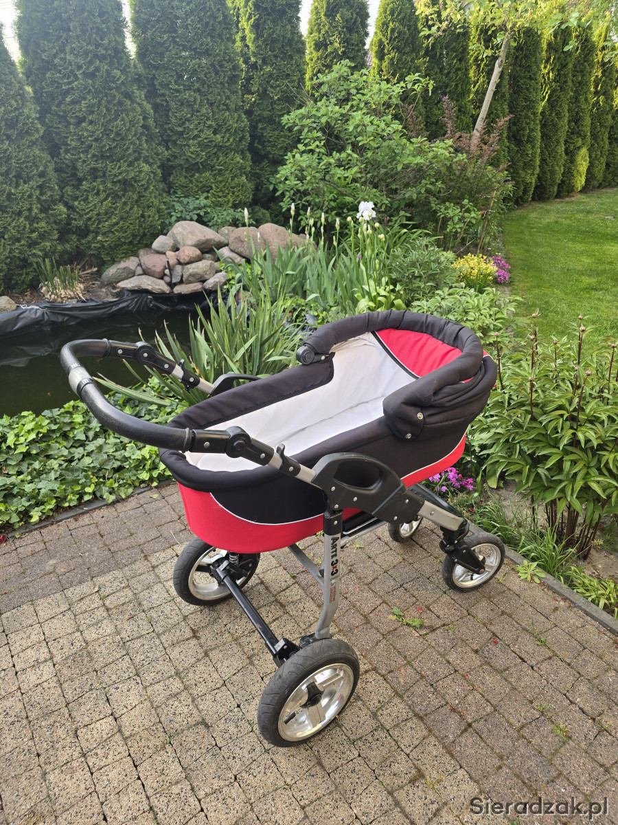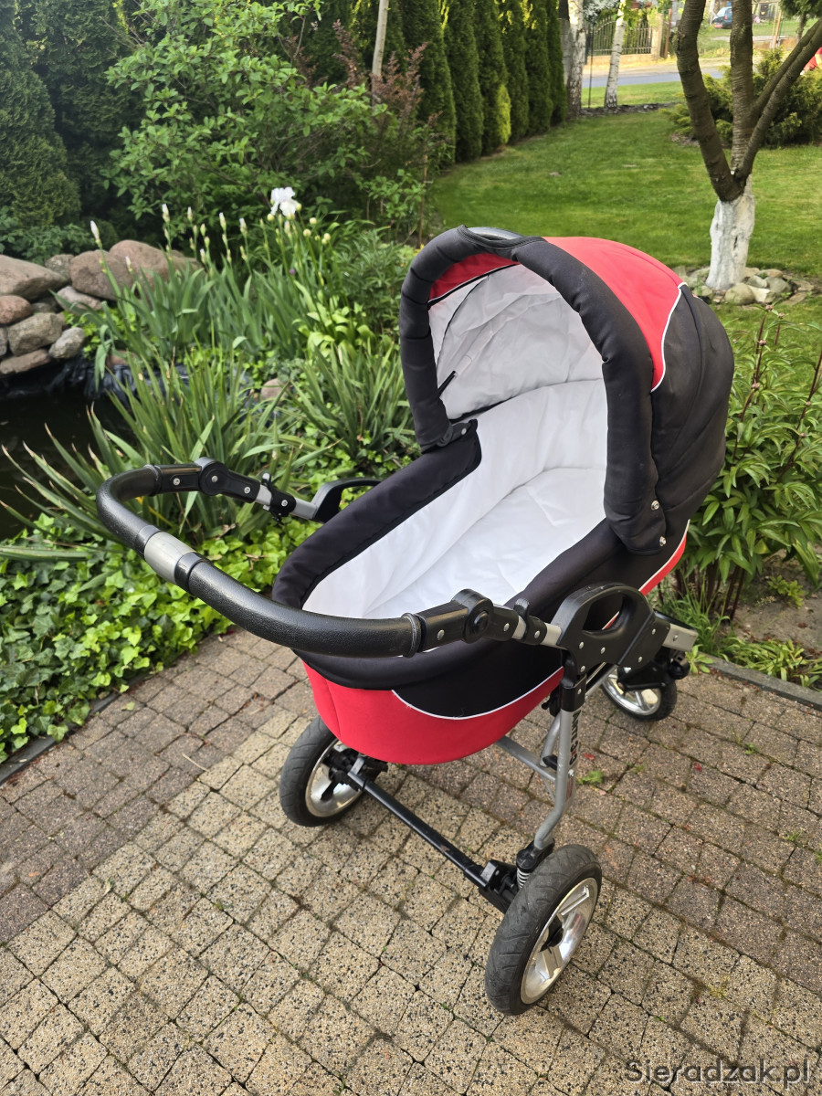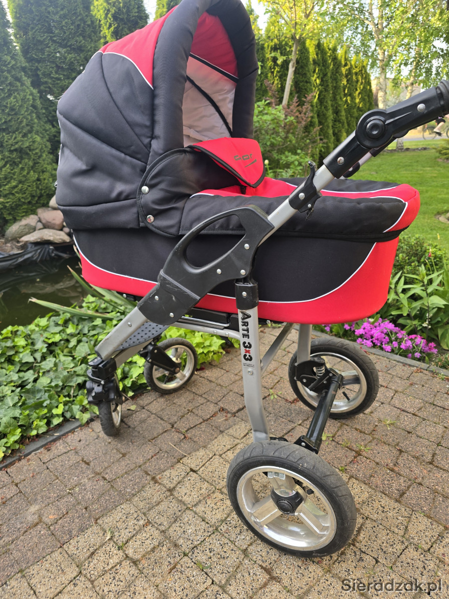 Wózek z możliwością przypięcia gondoli lub spacerówki oraz nosidełko. W bardzo dobrym stanie.