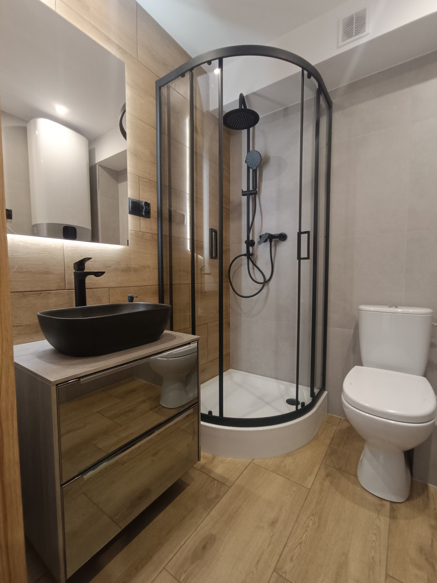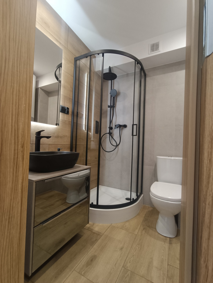 Mieszkanie przeszło profesjonalny, kompleksowy remont, obejmujący wymianę instalacji hydraulicznych i elektrycznych, położono nowe gładzie oraz nowoczesne panele wodoodporne ac5 posiadającymi 20-letnią gwarancję.