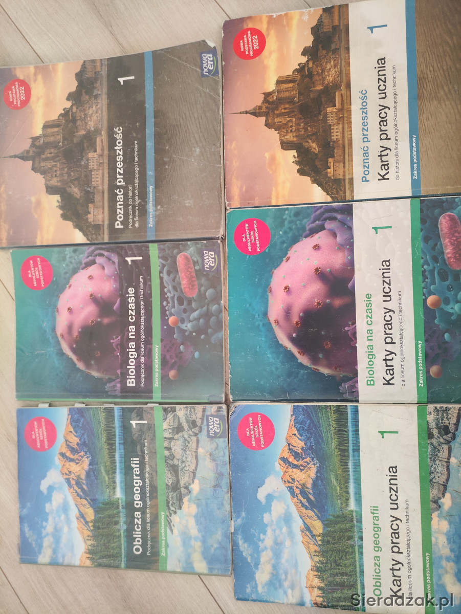 Sprzedam podręczniki do klasy pierwszej liceum technikum plus gratis karty pracy. Cena dotyczy pojedynczego podręcznika z kartami pracy. Stan bardzo dobry.