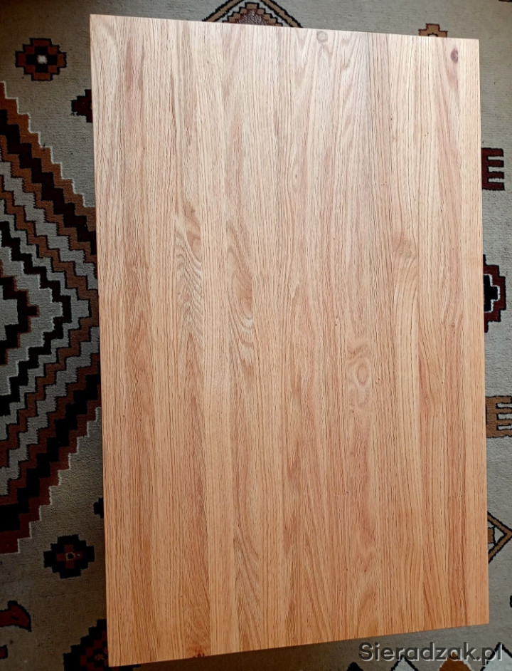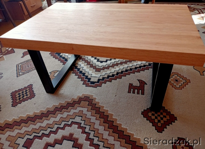 Sprzedam nowy stolik kawowy z litego dębu czerwonego. Wymiary blatu 100x64 cm wysokość 46 cm. Blat klejony, szczotkowany i zaolejowany o grubości 6 cm. Nogi metalowe w czarnym macie. Możliwość dowozu