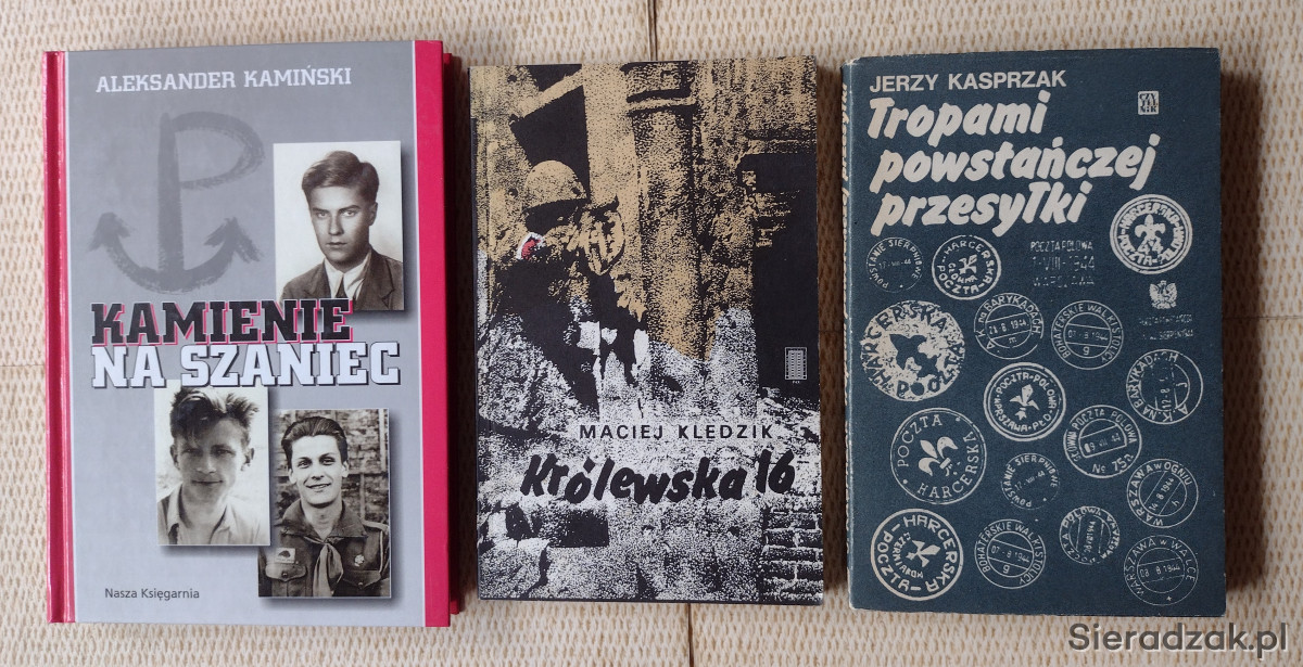 3 Książki .- Kamienie na szaniec, Królewska 16 i Tropami powstańczej przesyłki o tematyce wojennej.