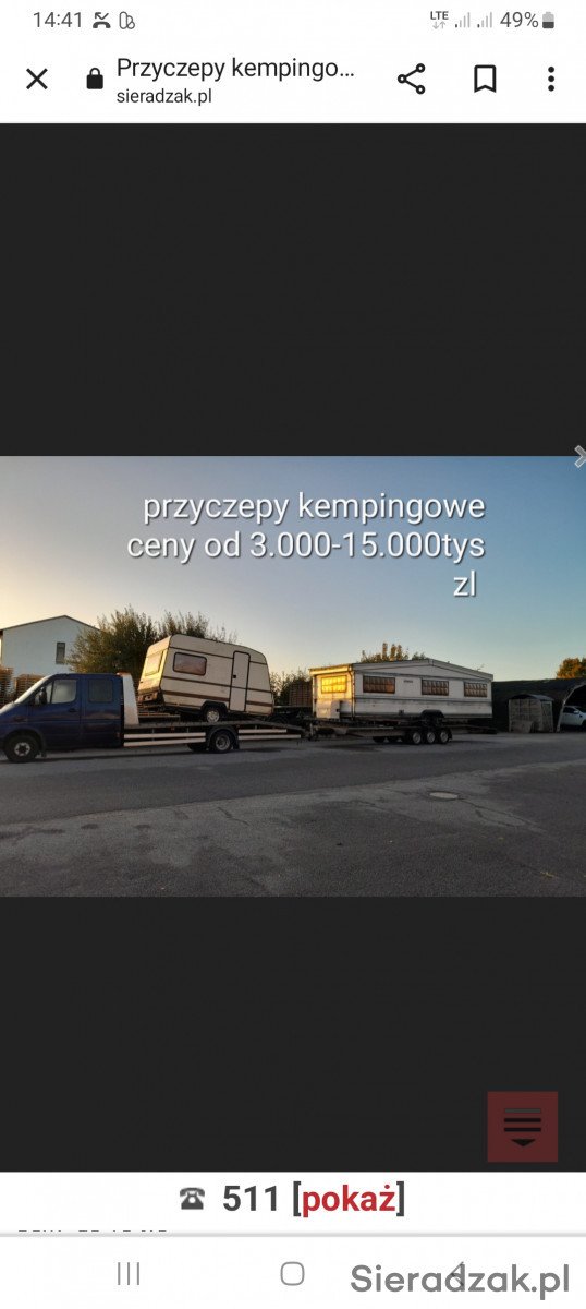 Przyczepa kempingowa z przeznaczeniem na dzialke Możliwość transportu