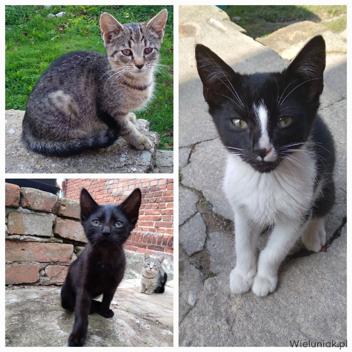 Trzy kocięta szukają nowych domów. Dwie kotki i jeden kocurek. Jedzą samodzielnie zarówno mokrą jak i suchą karmę. Koty są bardzo przyjacielskie.