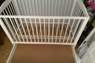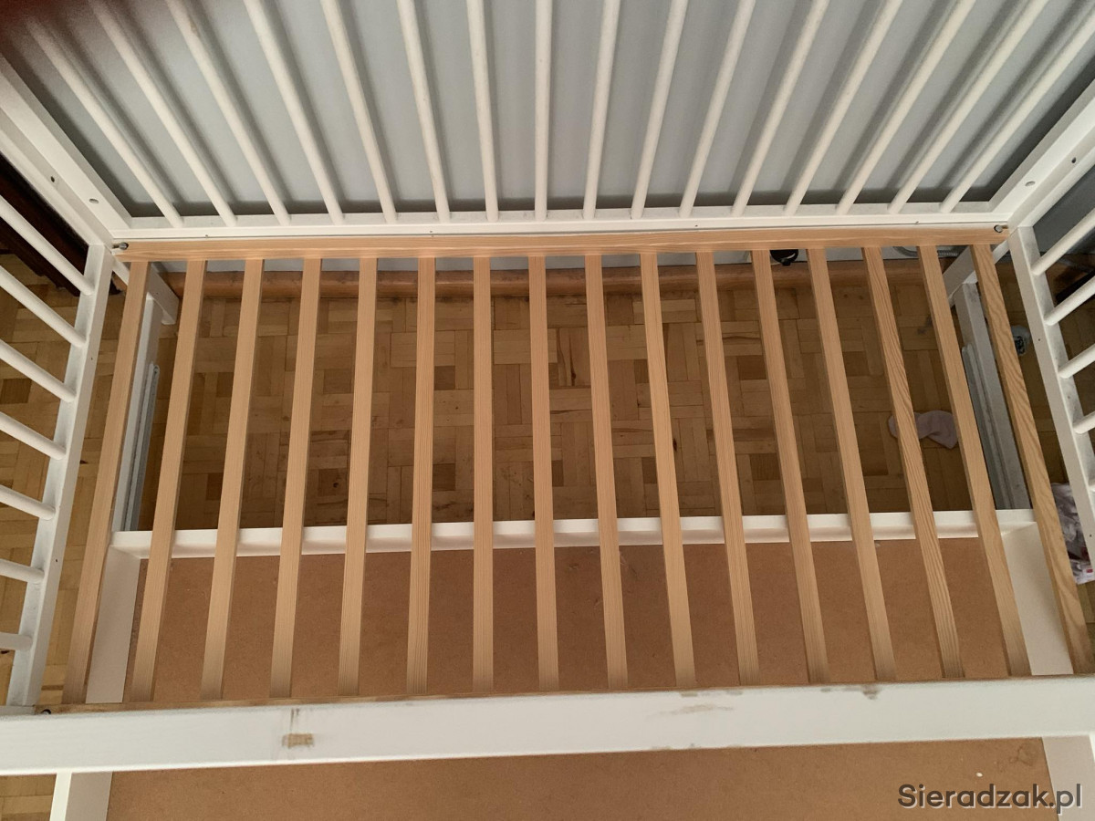 Łóżeczko drewniane, używane. Widoczne ślady użytkowania. 90zl. odbiór osobisty. Łóżeczko złożone. Materac w cenie.