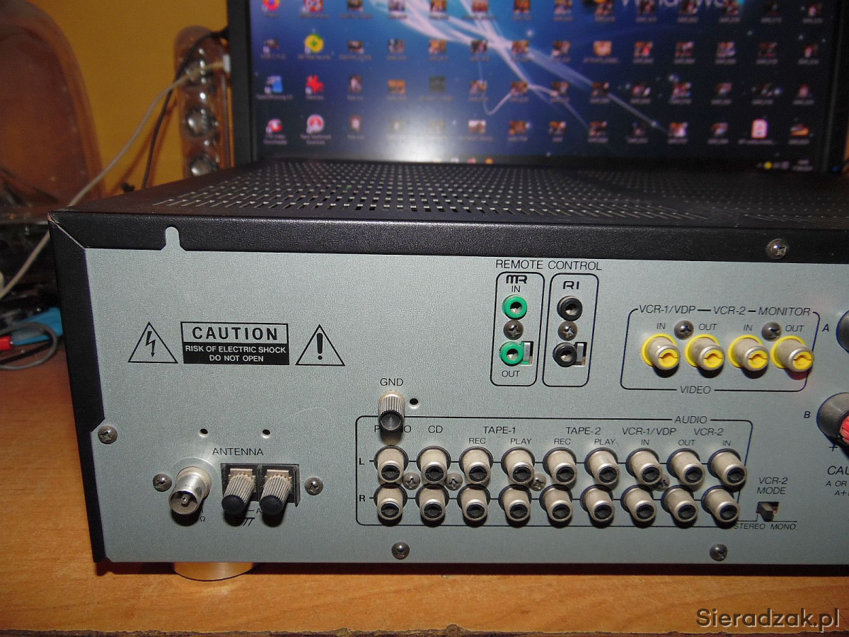 Ogromny kolorowy wyświetlacz. Duża ilość wejść. Regulowany Loudness. Pokrętło głośności na silniczku kręci sie podczas regulacji siły głosu. Trafo 200Watt i porządne markowe tranzystory mocy. Z tyłu wejścia prądowe do podłączenia 2 urządzeń np. magnetofonu i odtwarzacza CD.