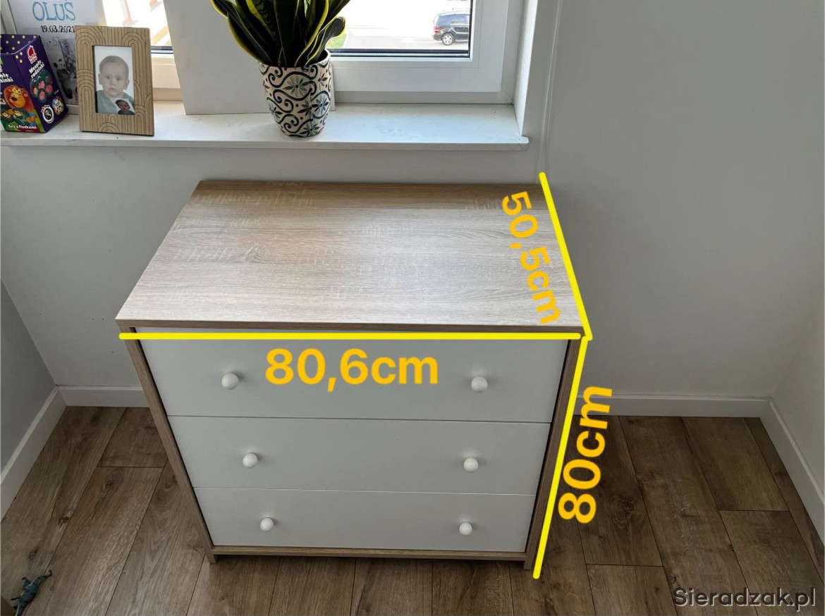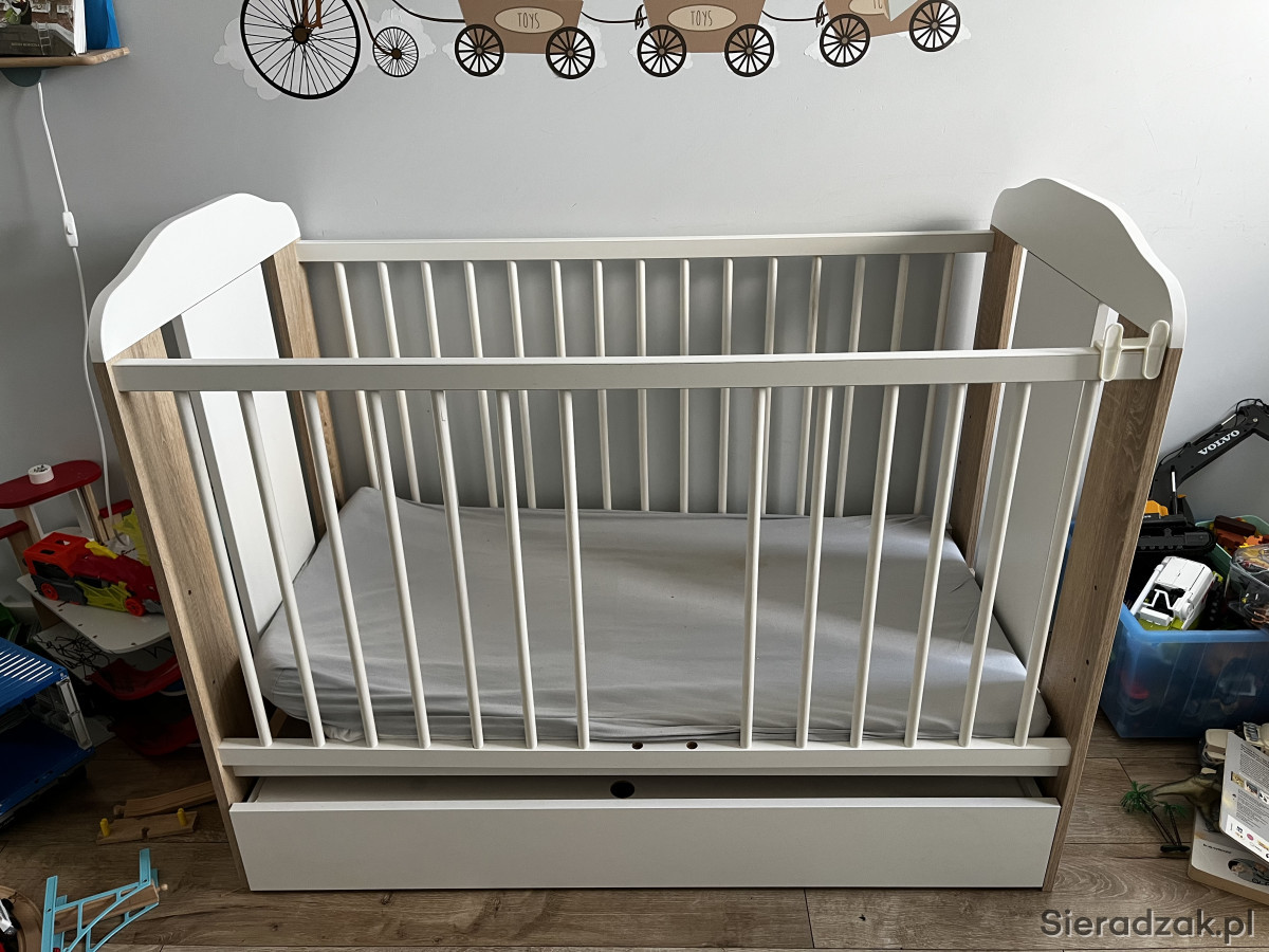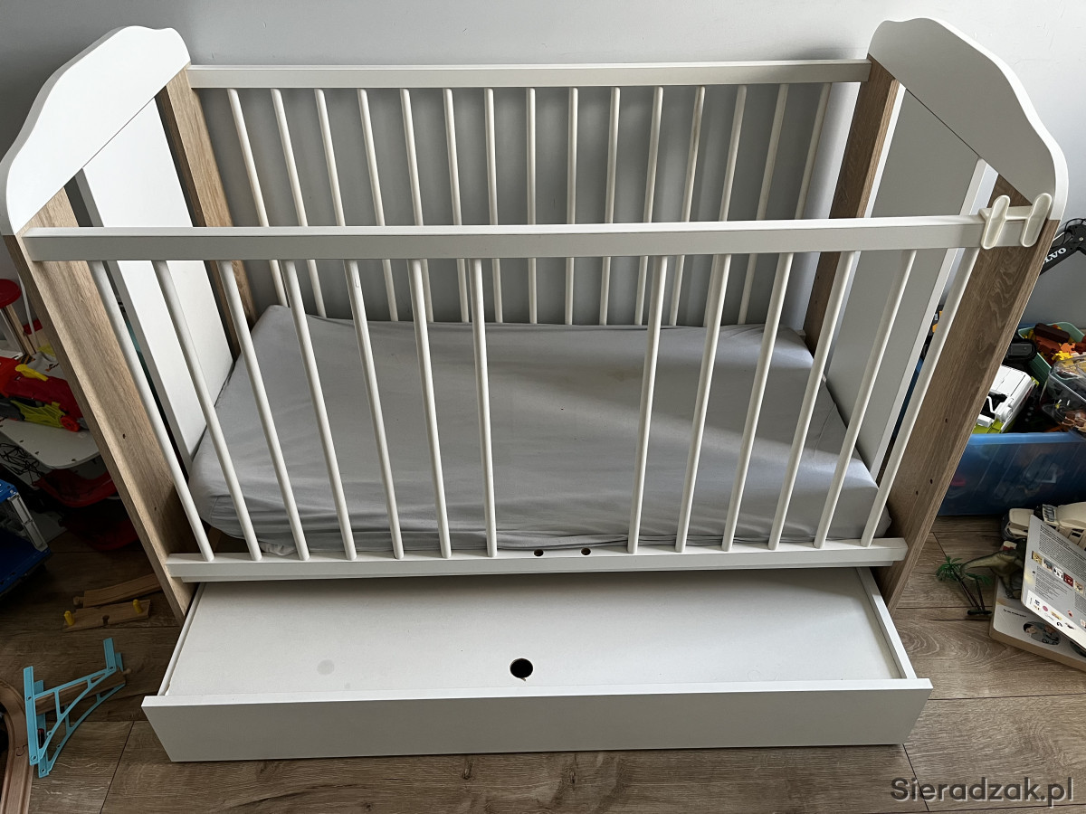 Mam do sprzedania używane meble dziecięce - łóżeczko z szufladą, komoda i przewijak zakładany na szafkę. Odbiór osobisty w Sieradzu