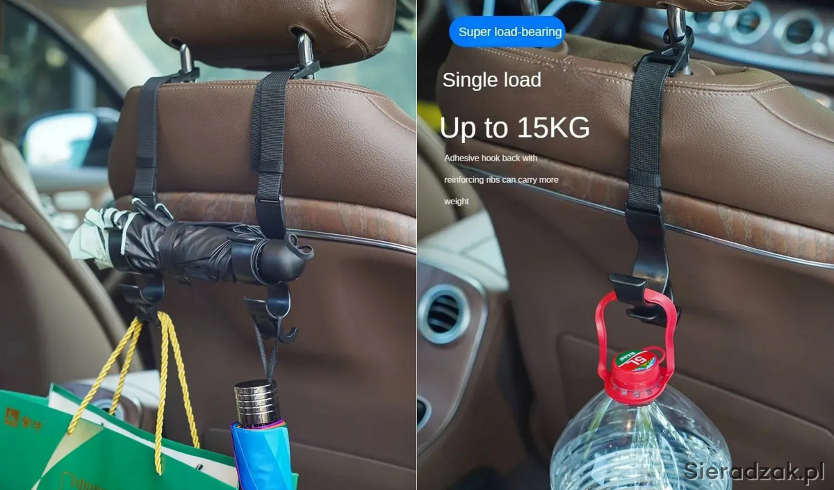 Przedmiotem oferty jest organizer hakowy do samochodu. Łatwy do zainstalowania na zagłówkach w ciągu kilkunastu sekund.