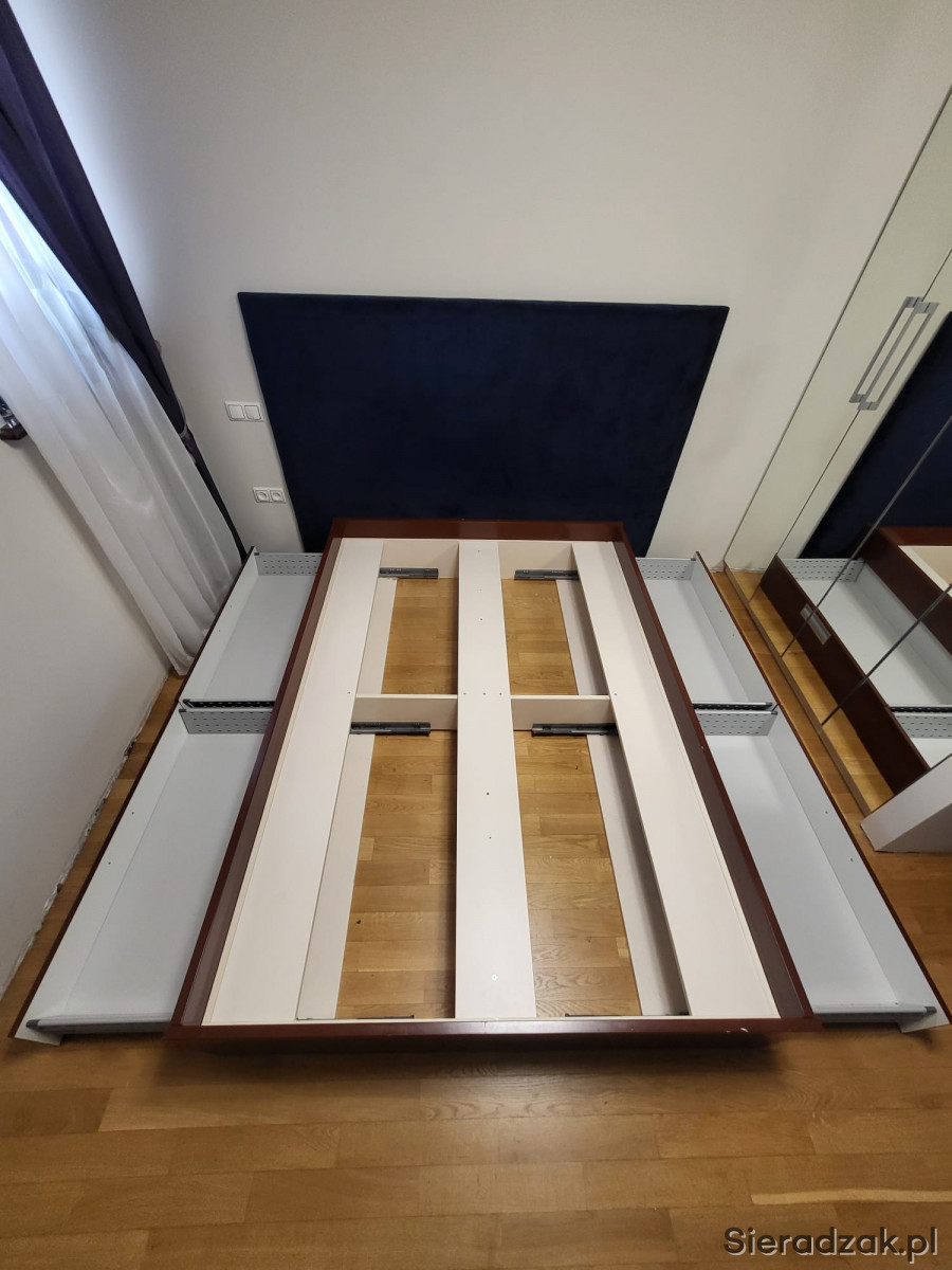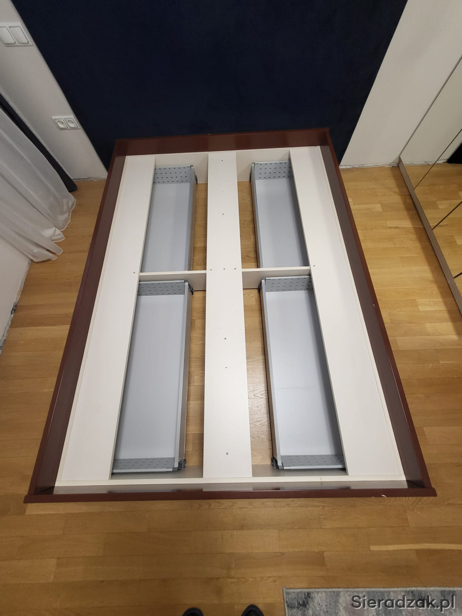 Łóżko na materac 140x200. Grubość płyty 3cm. Zawiera 4 wysuwane szuflady.