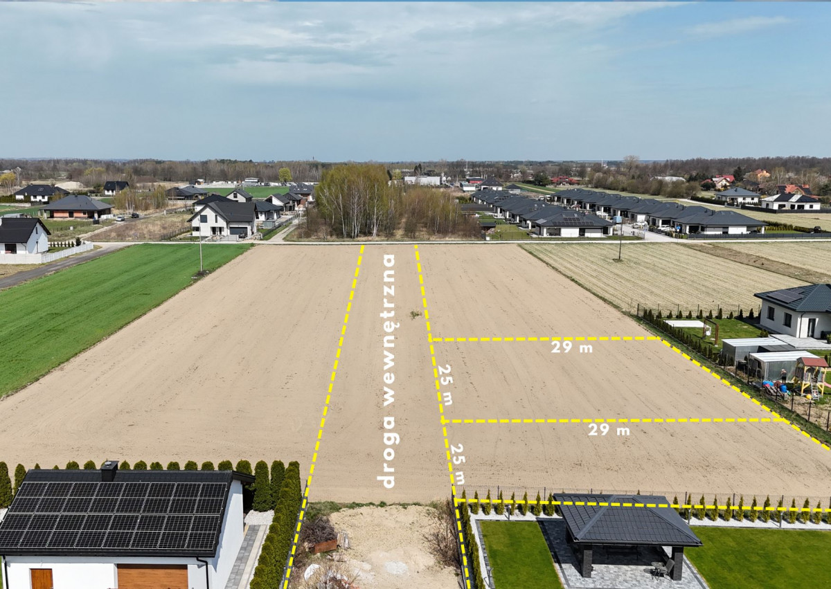 4. Dobre proporcje działki - wymiary działki (25 m szerokości na 29 m długości) sprawiają, że jest ona ustawna i pozwala na optymalne zaprojektowanie zarówno budynku, jak i ogrodu.