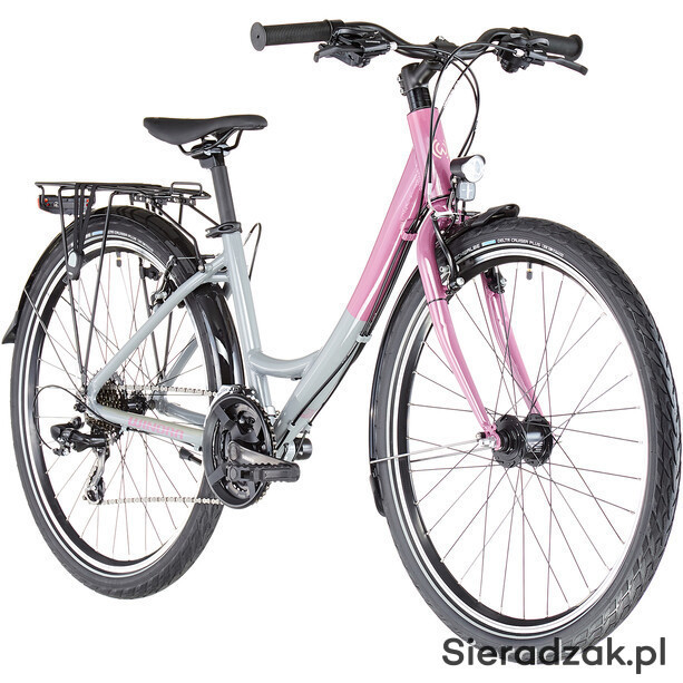 rama aluminium 17" 43cm,napęd 3x7,przerzutki shimano tourney,klamkomanetki shimano,hamulce v-brake shimano,dynamo shimano nexus,siodełko reko sport,opony schwalbe delta cruiser plus.