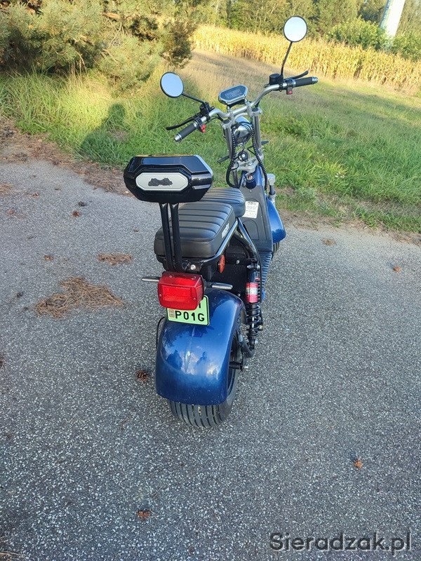 Skuter elektryczny napędzany bezszczotkowym silnikiem o mocy 1500W. Maksymalna prędkość jest ograniczona do 45km/h.
