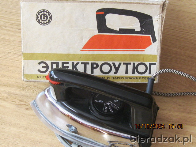 Sprzedam żelako komunistyczne ZSRR z roku 1974 czli równo 51 letnie. Żelazko nie używane, bardzo ciężkie , idealne do dokładnego prasowania. Raz przeprasujesz i jest karta. Co było żadkością w tamtych latach jest ono PAROWE co widać na zdjęciach . Polecam dla osób które lubią raz przeciągnąć żelazkiem i prasowana bielizna jest jak karta. Żelazko w 100 % sprawne. Solidne jak przystało na żelazko XX wieku , nie to co teraz , dużo plastiku i cienka blaszka jako element prasowalniczy..POLECAM