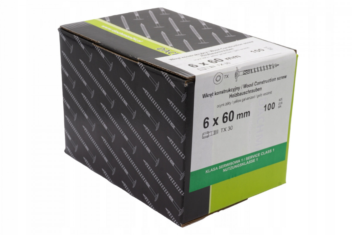 Wymiary wkręta: 6x60 średnica wkręta: 6mm długość wkręta: 60mm średnica łba: 15mm rodzaj łba: TORX 30 materiał: stal hartowana ocynkowana galwanicznie ilość: 100 szt/op