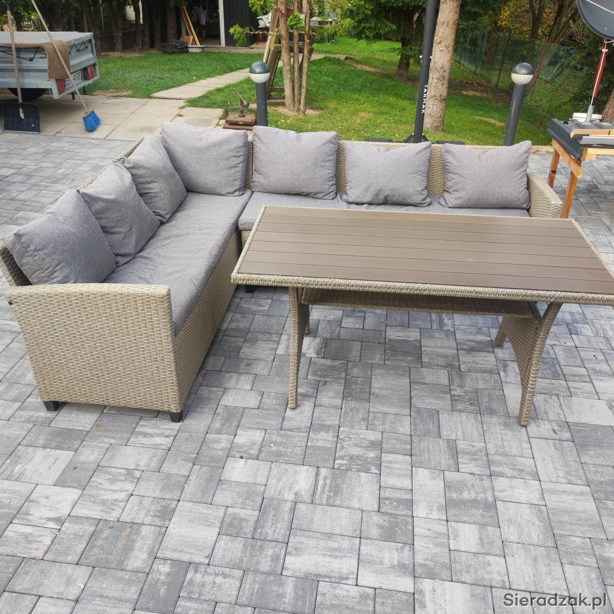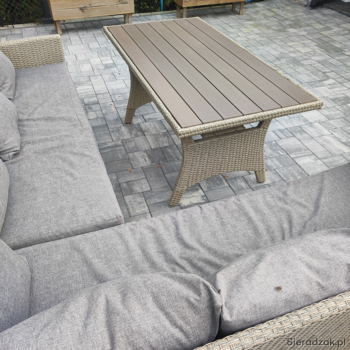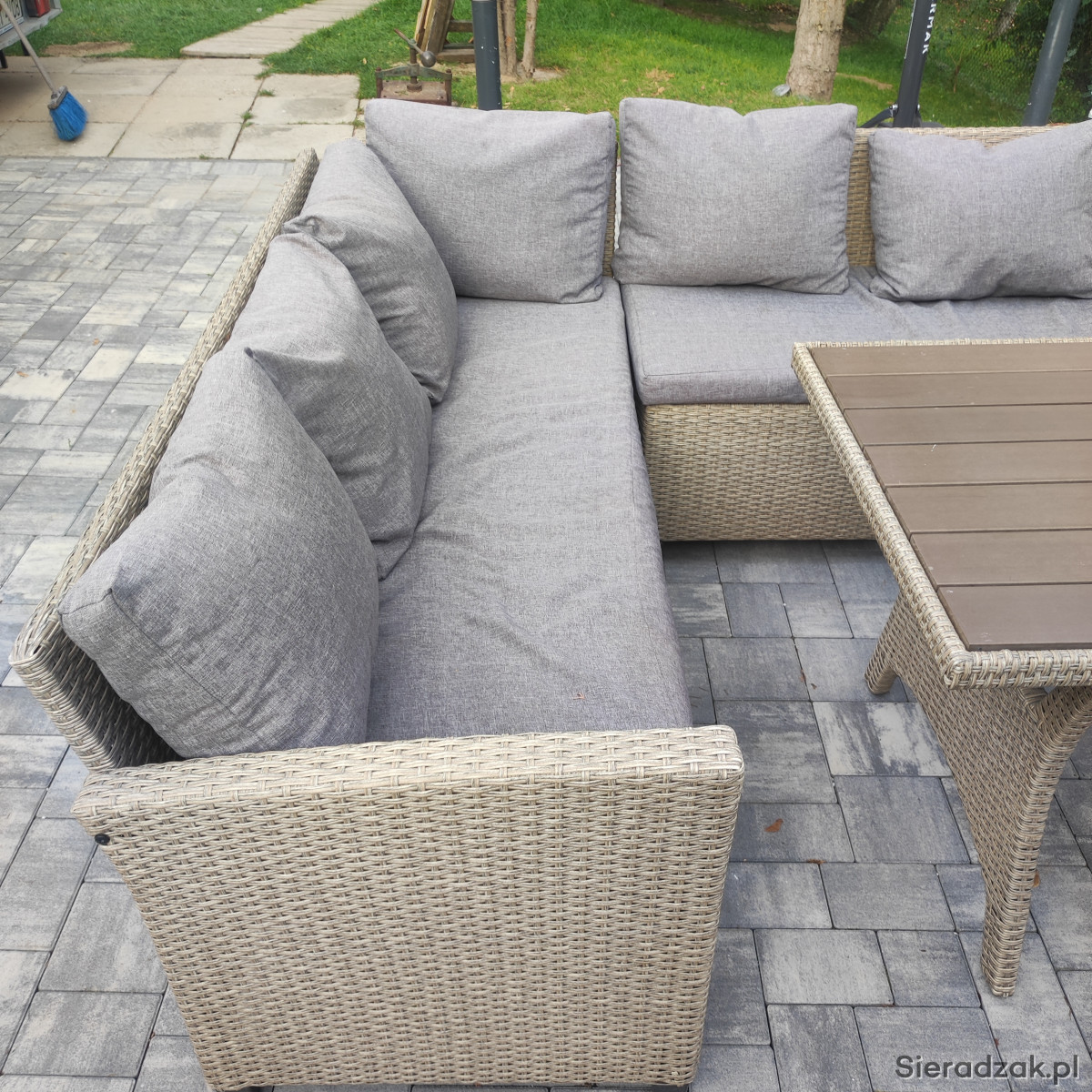 Sprzedam zestaw mebli ogrodowych - narożnik z poduszkami i stół . Używany,w bardzo dobrym stanie.