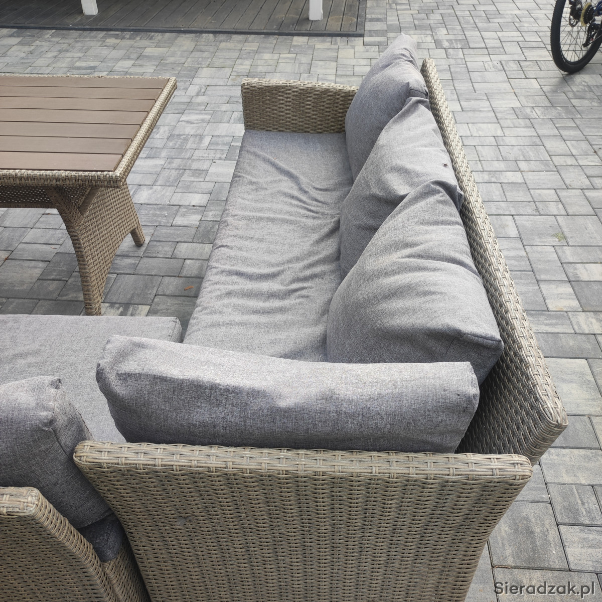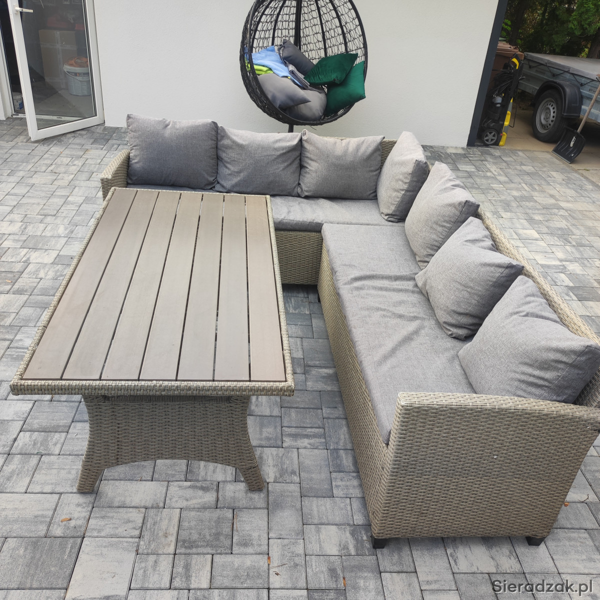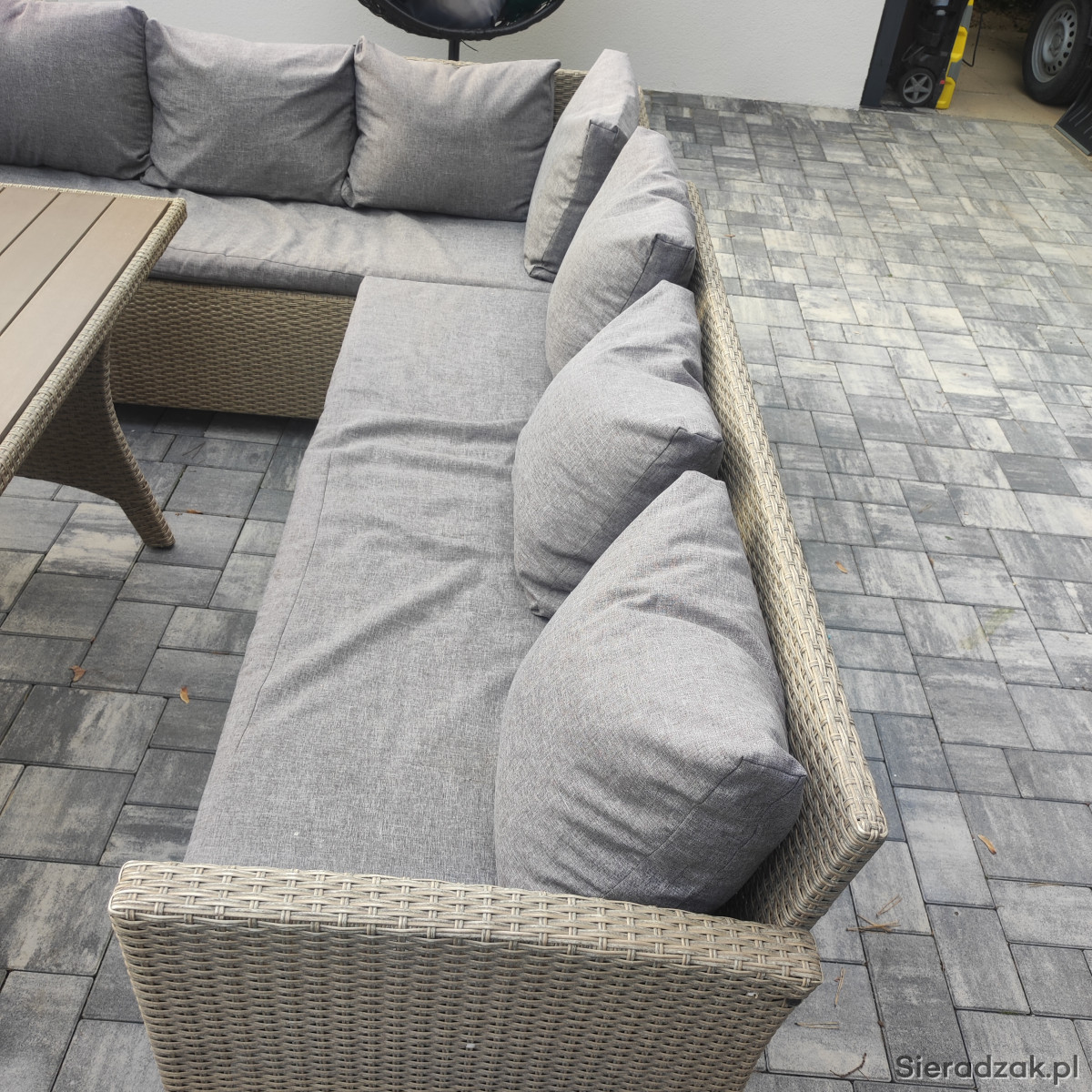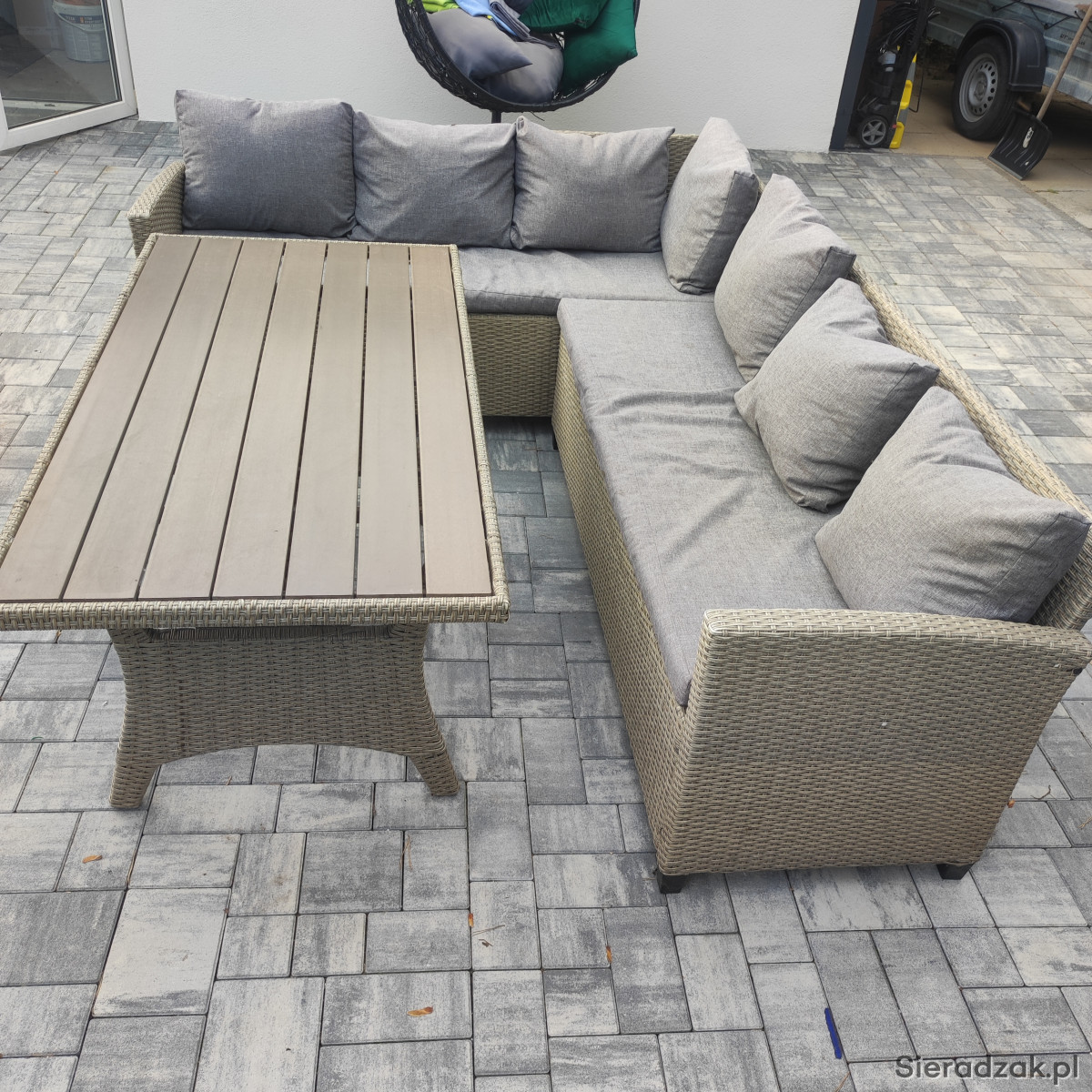 Sprzedam zestaw mebli ogrodowych - narożnik z poduszkami i stół . Używany,w bardzo dobrym stanie.