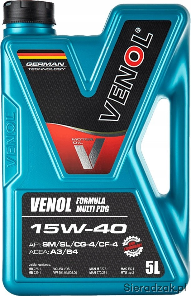 Olej VENOL FORMULA MULTI PDG SM SL CG 4 CF 4 15W40 5L.