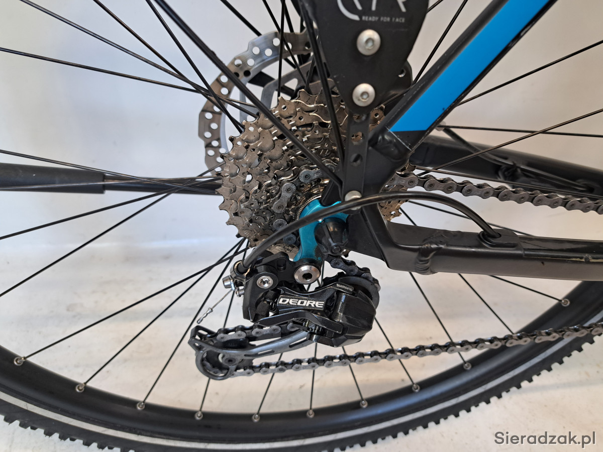 rama aluminium 6061 58cm (XL),napęd 1x9,przerzutka shimano deore,dzwignia zmiany biegów shimano deore,amortyzator sr suntour,hamulce hydrauliczne tarczowe shimano,opony schwalbe smart sam,siodło haibike,zabezpieczenie tylnego koła abus,oświetlenie lumotec zasilane z akumulatora.stan bardzo dobry.