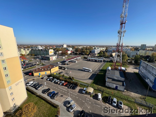 - jasnego salonu z wyjściem na balkon typu loggia, gdzie rozciąga się piękny widok na panoramę Sieradza,