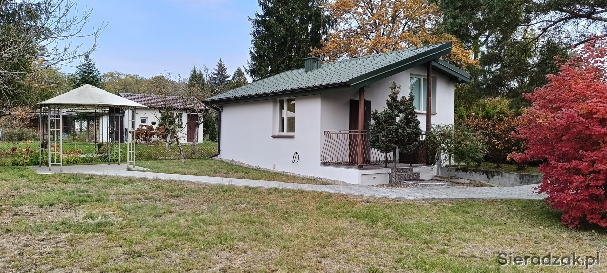 Sprzedam działkę rekreacyjną na terenie ROD ''Uroczysko''- Sieradz, ul. Paszkiewicza. Jest to działka narożna, ogrodzona z bramą wjazdową o pow. ok 4,8 a, częściowo wyłożona kostką . Na działce znajduje się murowany domek, w bryle budynku garaż (pomieszczenie gospodarcze). Dach pokryty blachodachówką, nowe okna, drzwi, nowa instalacja elektryczna, hydrauliczna oraz zamontowany zbiornik na szambo. W domku znajduje się zabudowana kuchnia z płytą gazową oraz piekarnikiem, salonik na podwyższeniu, łazienka z toaletą i prysznicem, umywalką oraz bojlerem o pojemności 60 l. Działka zagospodarowana dużą ilością nasadzeń, altaną rekreacyjną,
