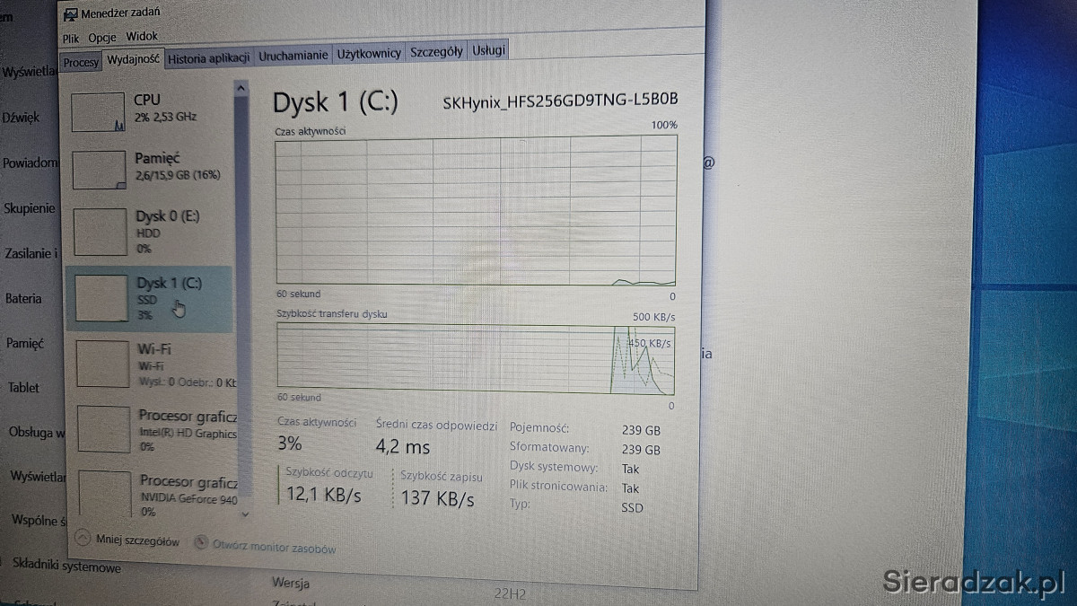 Na sprzedaż mam laptopa gamingowego do gier Acer Aspire F5 573G ma szybki procesor Intel Core I5, grafikę NVIDIA GeForce 940mx oraz 16gb pamięci RAM. Dysk SSD 256gb na system oraz drugi dysk zwykły 1000gb na dane.