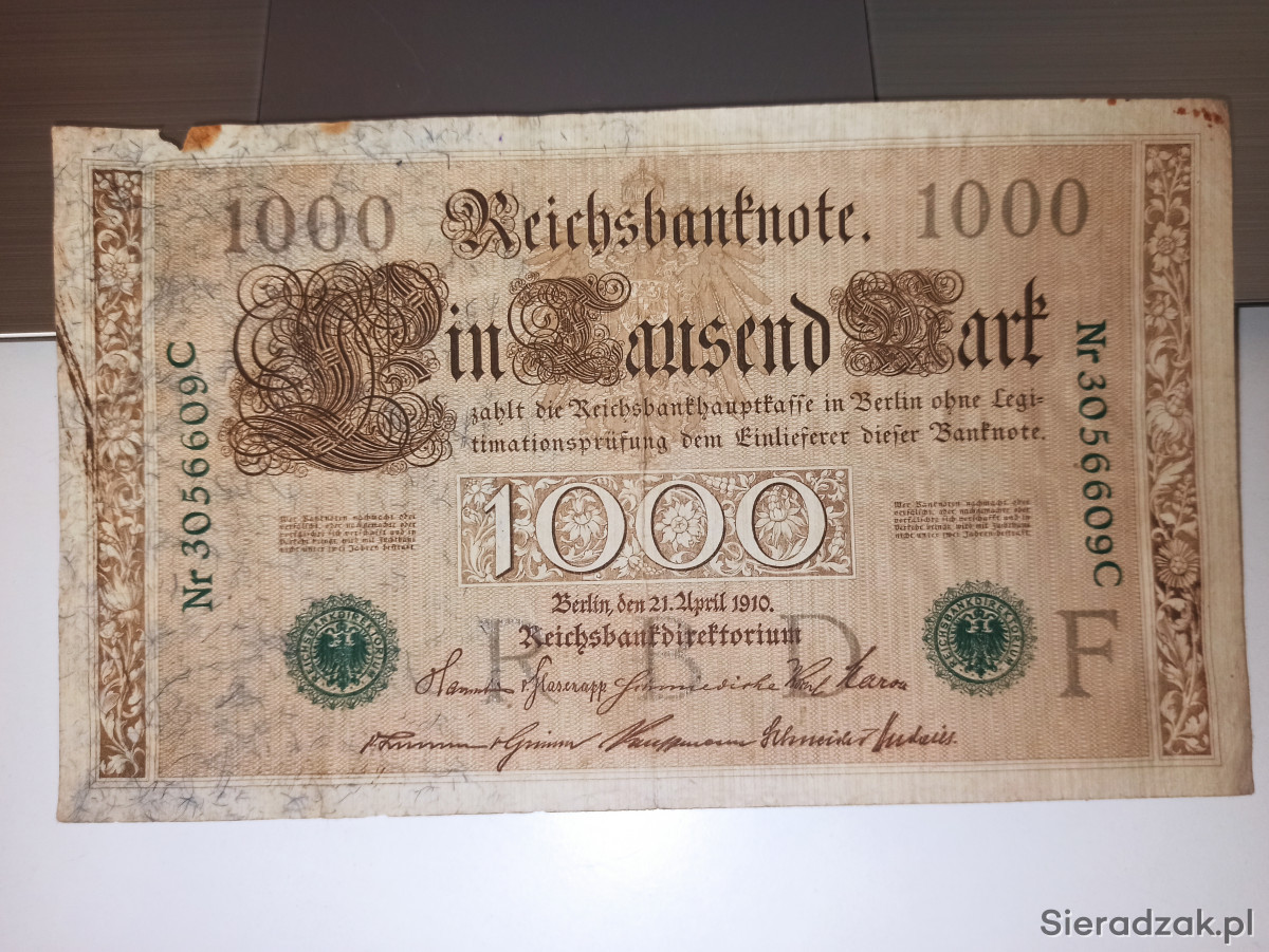 Sprzedam banknot Niemiecki 1000 marek z 1910 roku