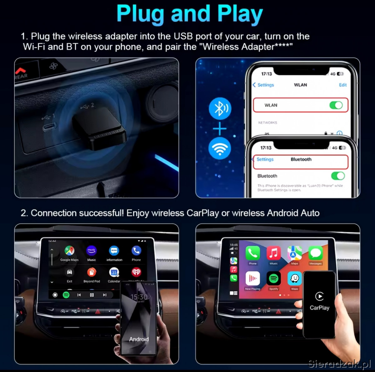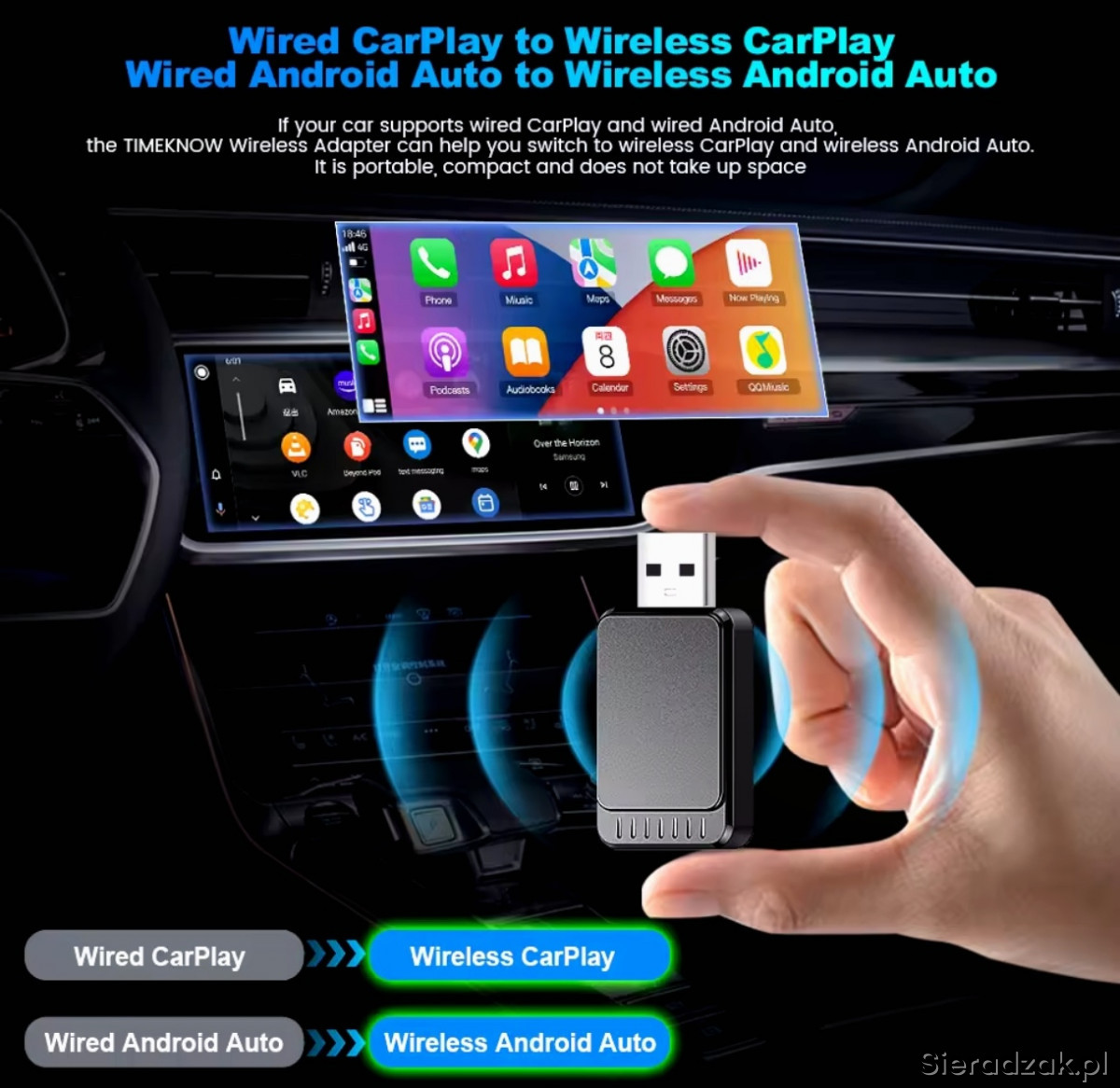 Witam, mam do sprzedania bezprzewodowy Adapter Car Play Android Auto 2 Timeknow tylko raz włożony do auta w zestawie wszystko, co daje producent proszę pisać pozdrawiam i zapraszam również na inne moje aukcje.
