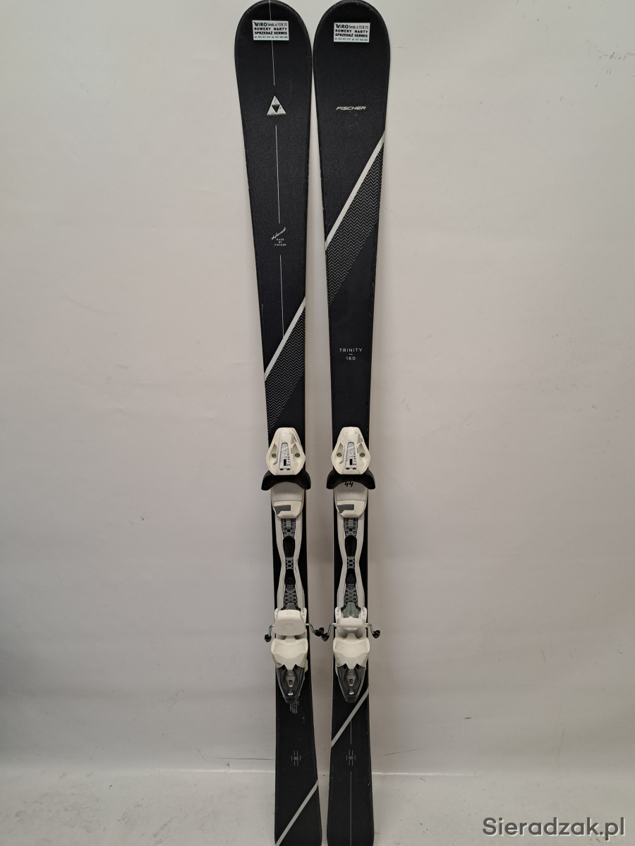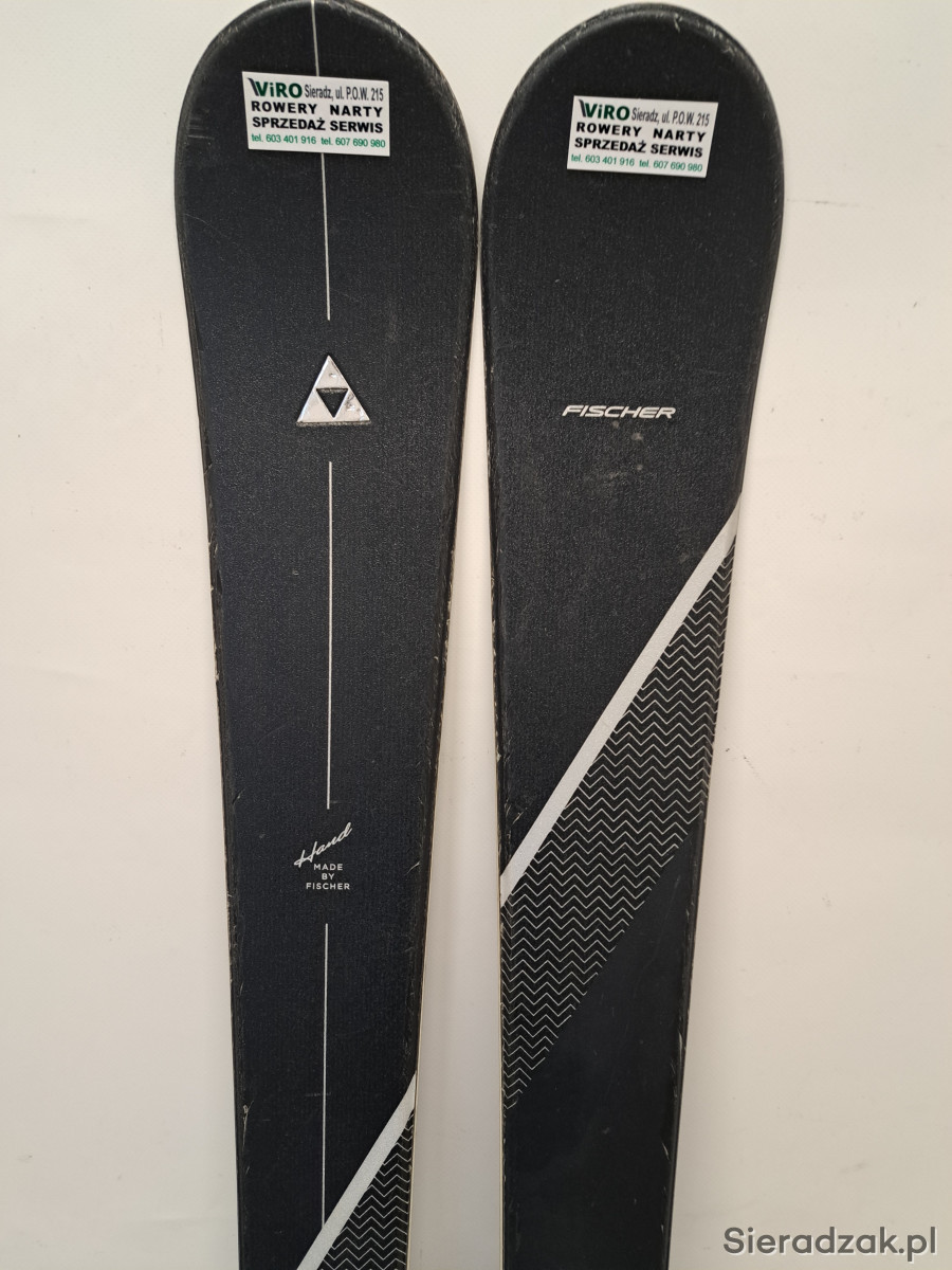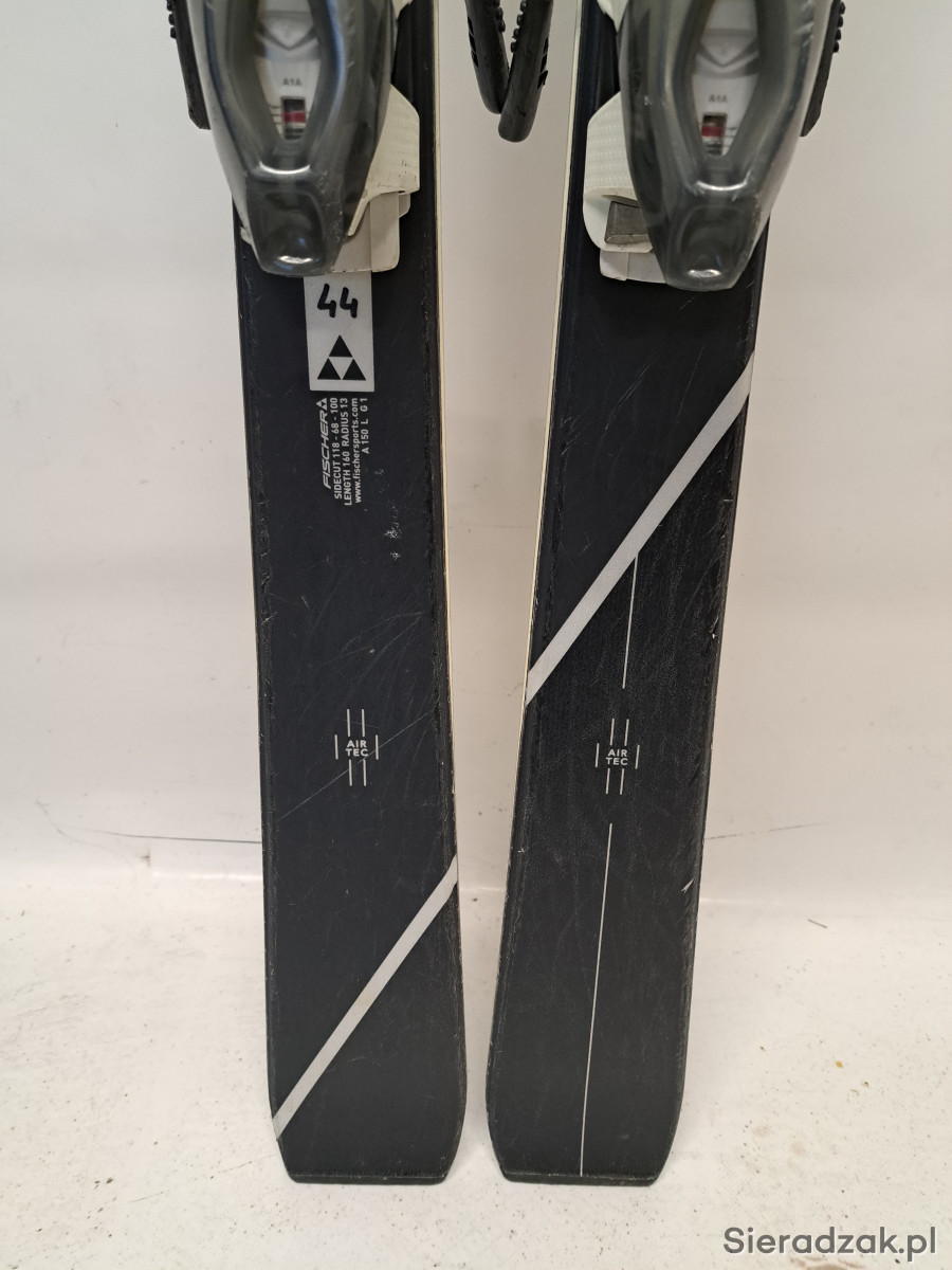 narty o długości 160cm,promień skrętu 13m,taliowanie 118/68/100,wiązanie rentalowe fischer 9w skala 2.5-9 din.ślizgi w bardzo dobrym stanie.