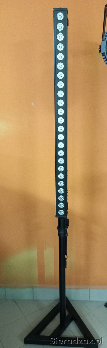 Zestaw oświetleniowy Listwa LED BAR 24 x 3W RGB DMX na Statywie z regulacją wysokości i pilotem. Zestaw zawiera listwę, statyw i redukcję. Oświetlenie doskonale sprawdza się w dekoracji światłem sali weselnych, pomieszczeń hotelowych, restauracyjnych, jako oświetlenie sceniczne w domach i ośrodkach kultury, podczas koncertów, różnego typu występów, gali i prezentacji, a także w klubach tanecznych, dyskotekach oraz jako oświetlenie dla mobilnych DJ-ów, zespołów i firm eventowych itp.