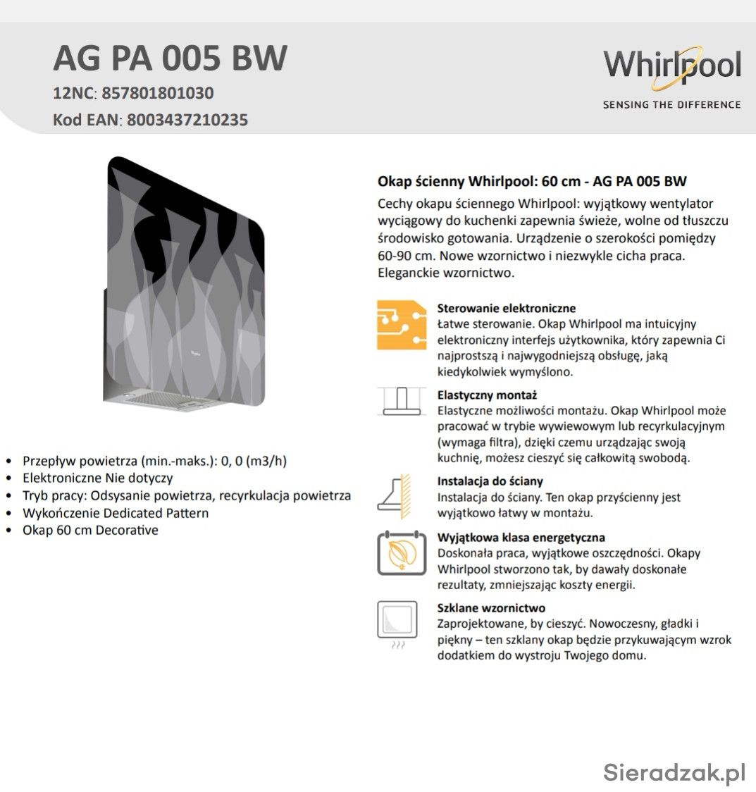 Okap Whirlpool ma intuicyjny elektroniczny interfejs użytkownika, który zapewnia Ci najprostszą i najwygodniejszą obsługę, jaką kiedykolwiek wymyślono.