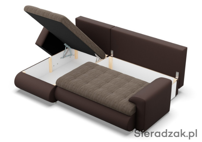 Nasza Rogówka Foresta to mebel z funkcją spania, w którym zastosowaliśmy w użyciu system DL. Wystarczy podnieść siedzisko do góry i przesunąć do przodu, w miejscu siedziska powstanie wolna przestrzeń, w którą kładziemy oparcie. W ten sposób zyskujemy miejsce do spania o powierzchni 200x140 cm.
