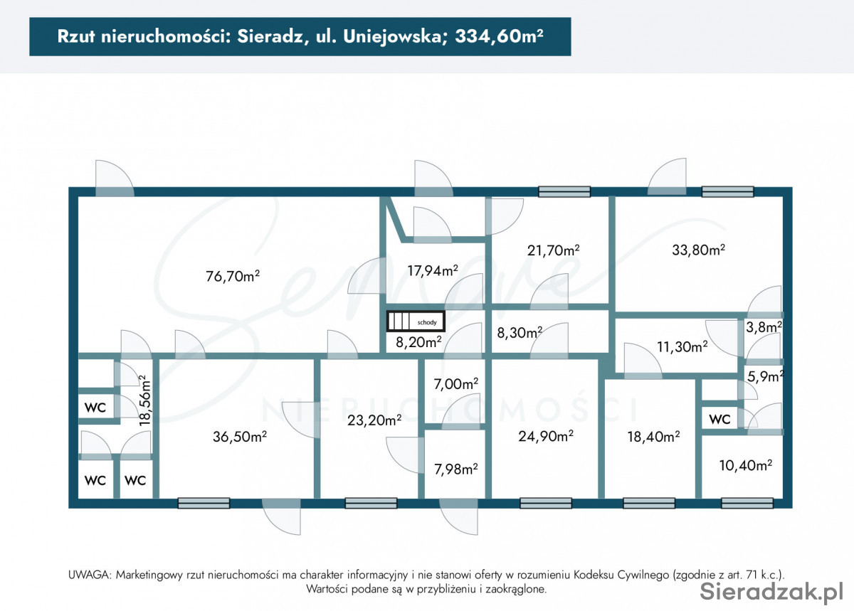Nieruchomość położona w atrakcyjnej części Sieradza, przy ul. Uniejowskiej, w otoczeniu zabudowy mieszkalnej i usługowej.