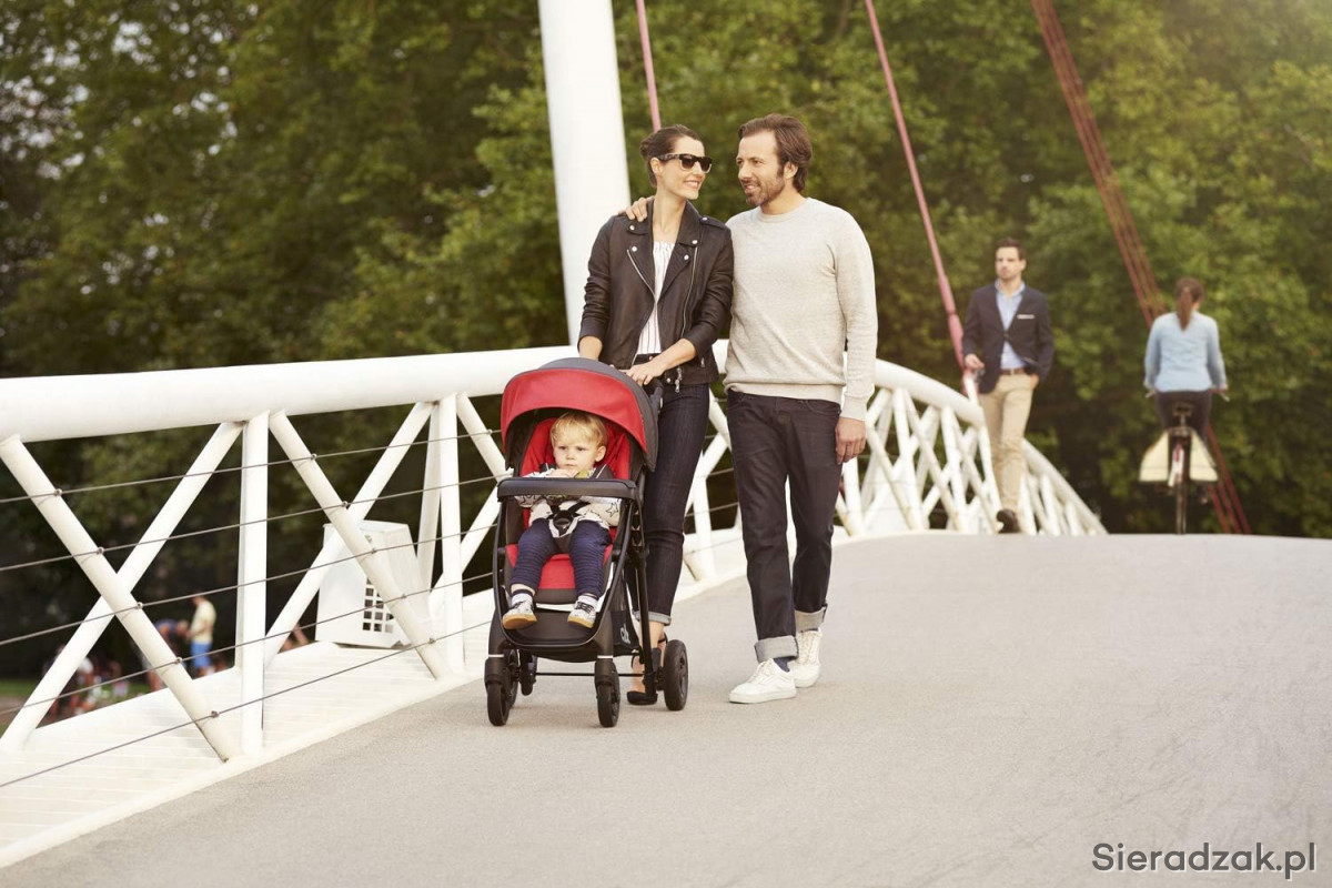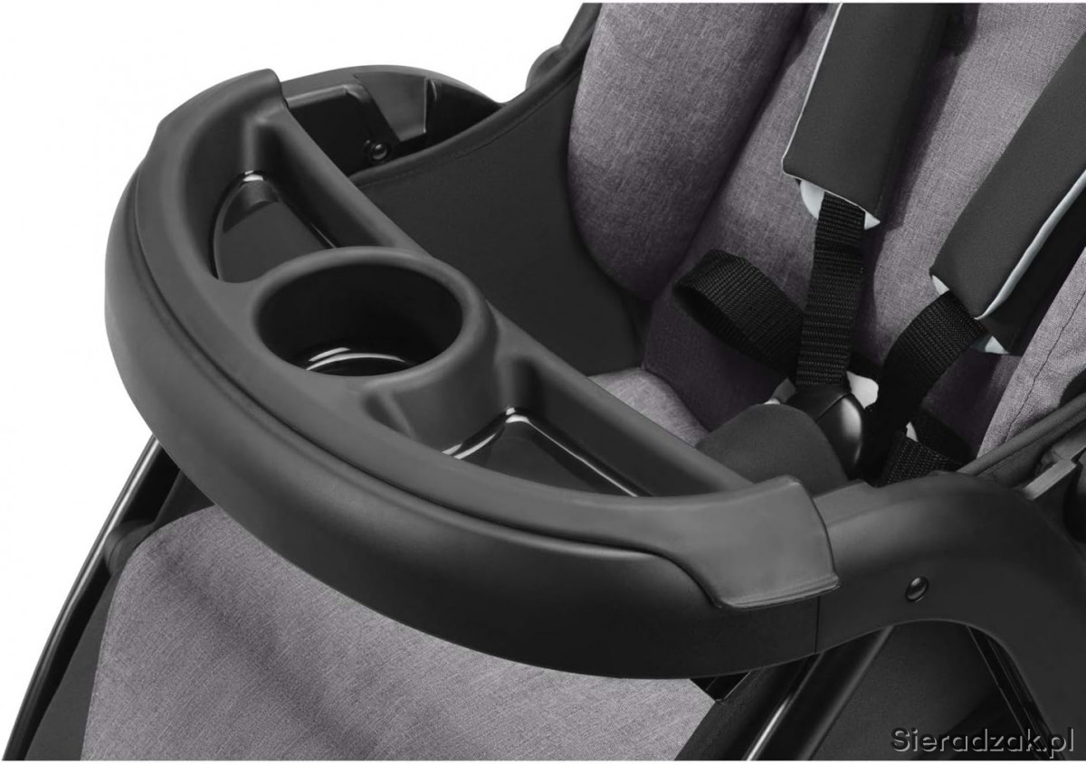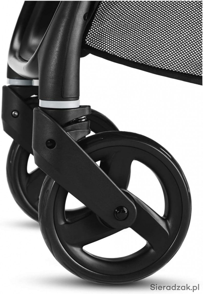 Cybex CBX Misu Air to spacerówka o niebanalnym designie. Aluminiowa rama wózka sprawia, że jest on nie tylko lekki, ale jednocześnie solidny i stabilny. Dzięki pompowanym kołom świetnie się go prowadzi po każdym terenie. Maluch może w nim podróżować już od 6 miesiąca życia do osiągnięcia wagi 15 kg, na pewno będzie mu niezwykle komfortowo w obszernym siedzisku, do którego użyto miłych w dotyku materiałów. Oprócz wygody CBX Misu zapewnia dziecku bezpieczeństwo poprzez 5-punktowe pasy bezpieczeństwa oraz pałąk z tacką, które chronią przed wypadnięciem ze spacerówki. Wszystkie koła są amortyzowane, więc dobrze się prowadzi, a przednie skrętne można zablokować do jazdy na wprost- bardzo przydatne gdy chcemy jeździć po nierównej nawierzchni.