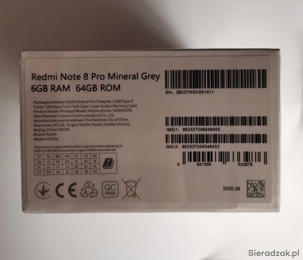 Sprzedam telefon Xiaomi Redmi Note 8 Pro 6GB RAM 64GB pamięci.